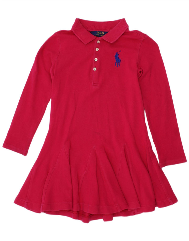 POLO RALPH LAUREN Girls Long Sleeve Polo Dress 5-6 Years Pink Cotton