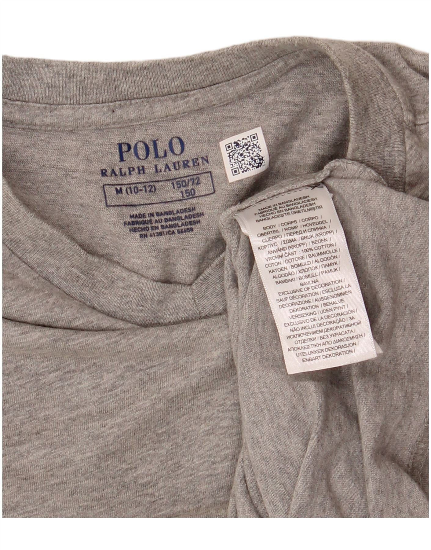 POLO RALPH LAUREN Girls T-Shirt Top 8-9 Years Medium Grey Flecked Cotton