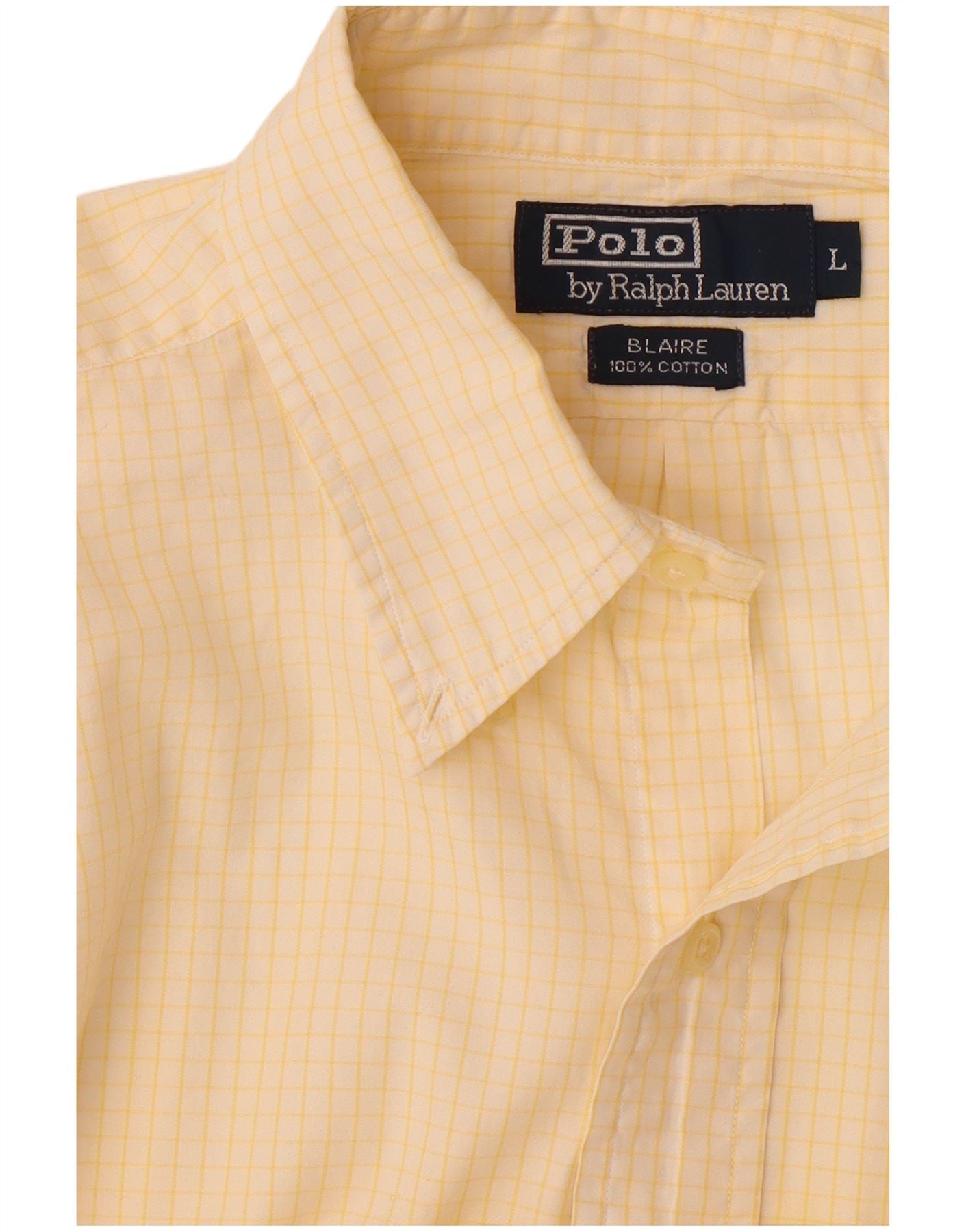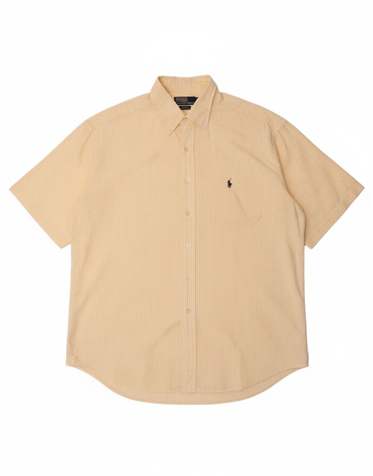 POLO RALPH LAUREN Mens Blaire Short Sleeve Shirt Large Yellow Check Cotton
