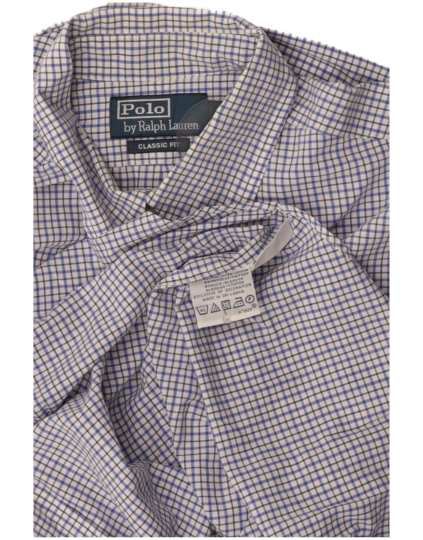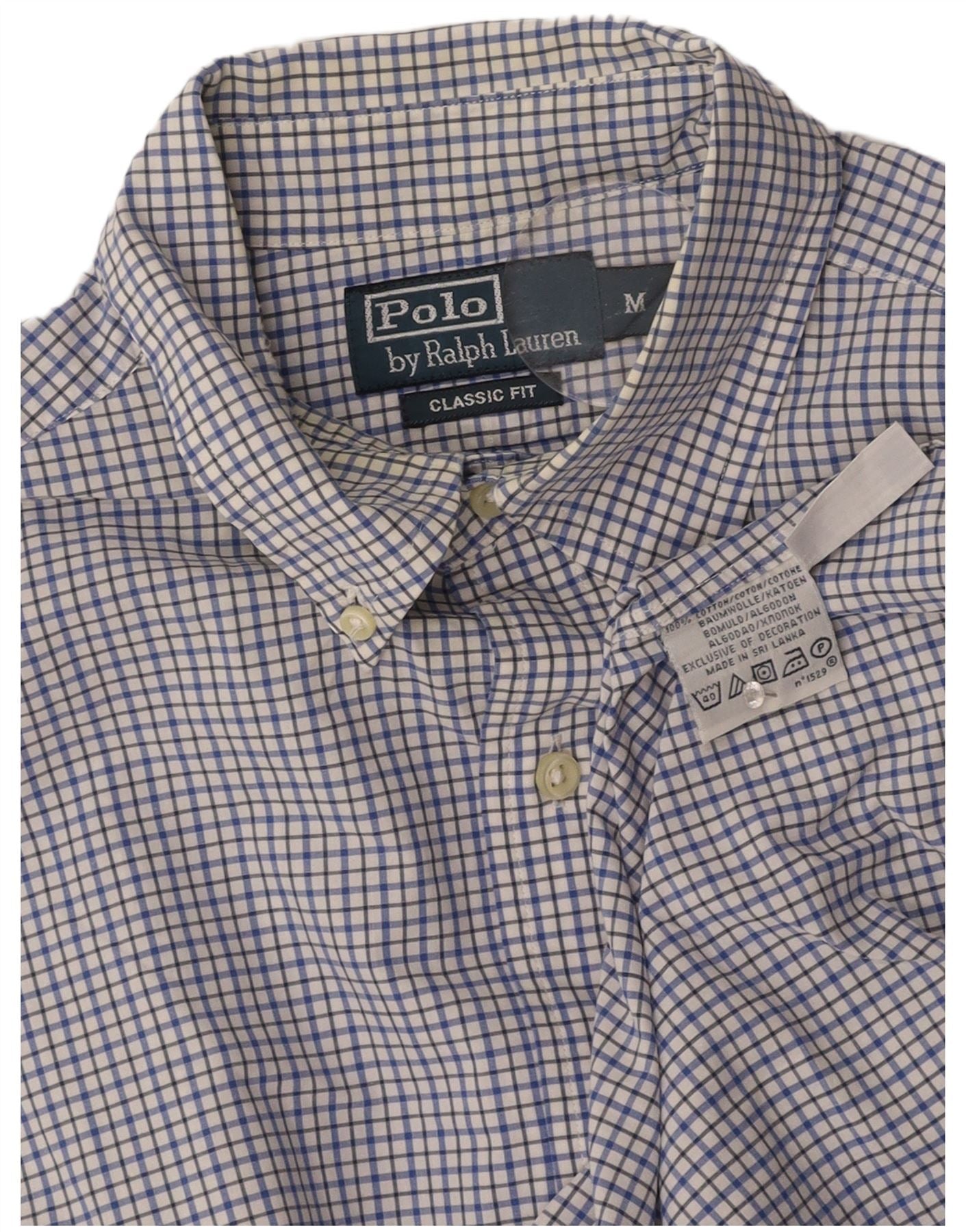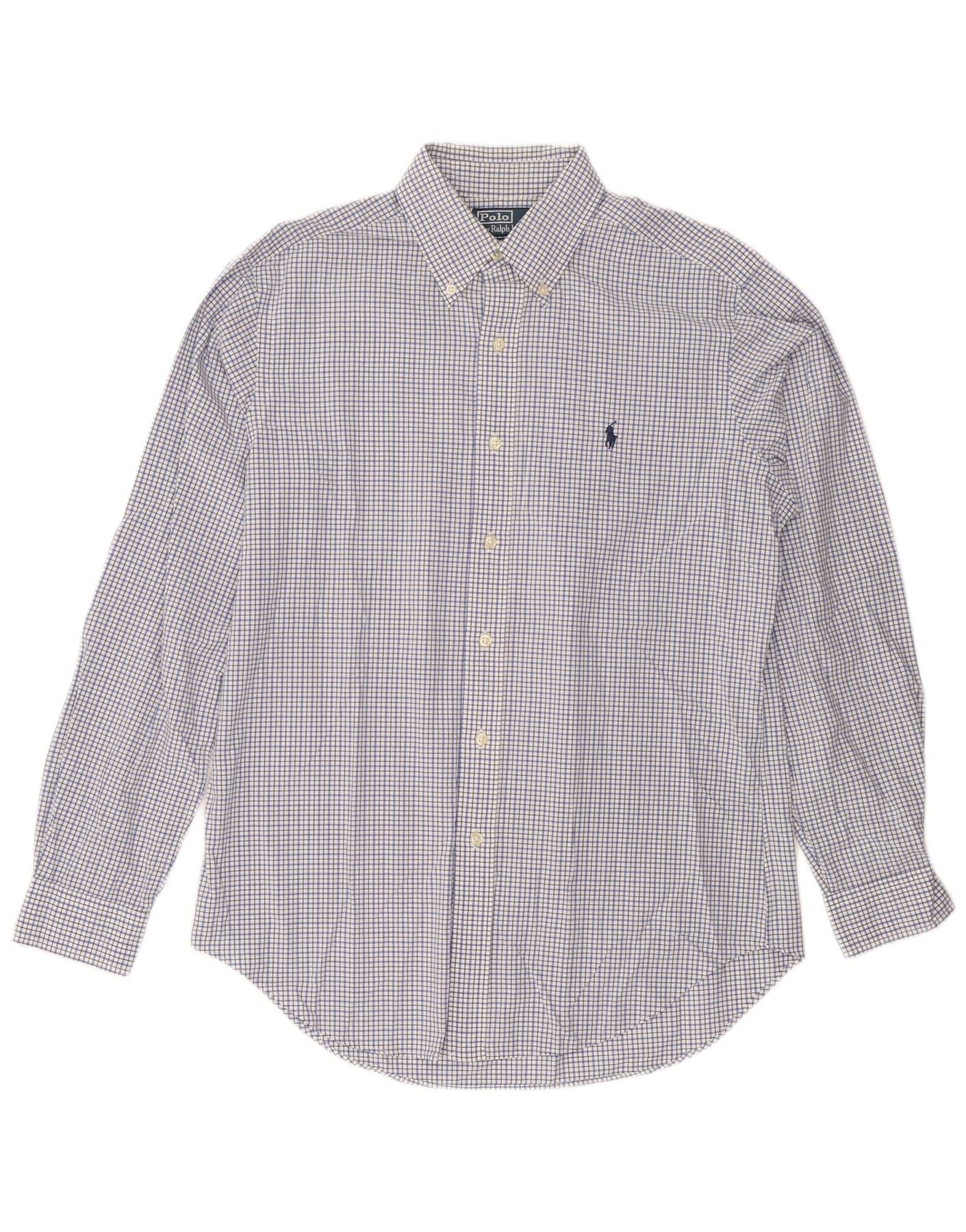 POLO RALPH LAUREN Mens Classic Fit Shirt Medium Blue Check Cotton