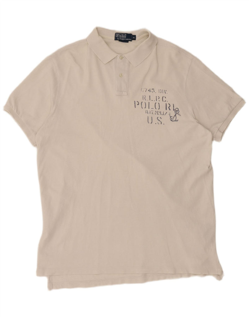 POLO RALPH LAUREN Mens Custom Fit Graphic Polo Shirt XL White Cotton