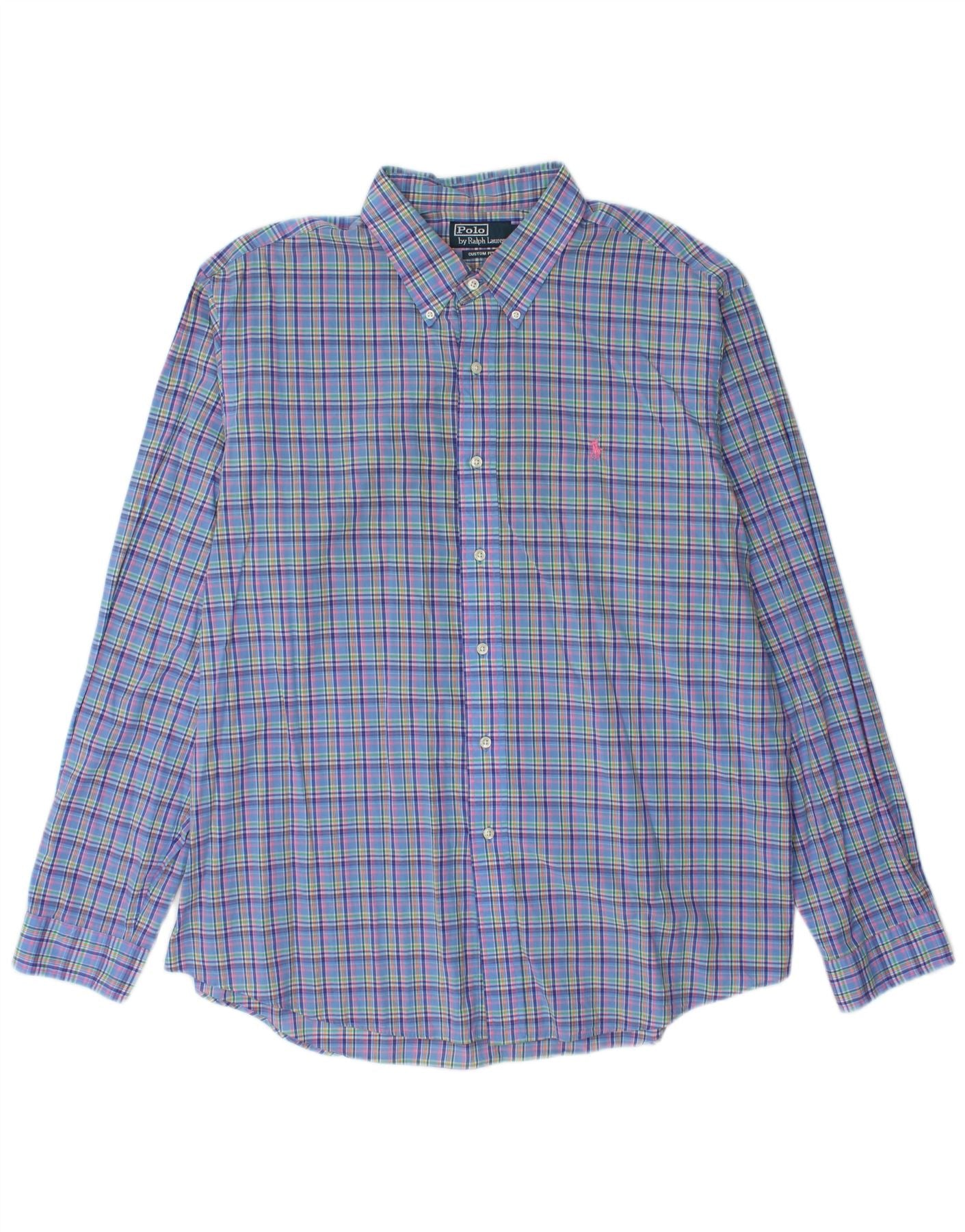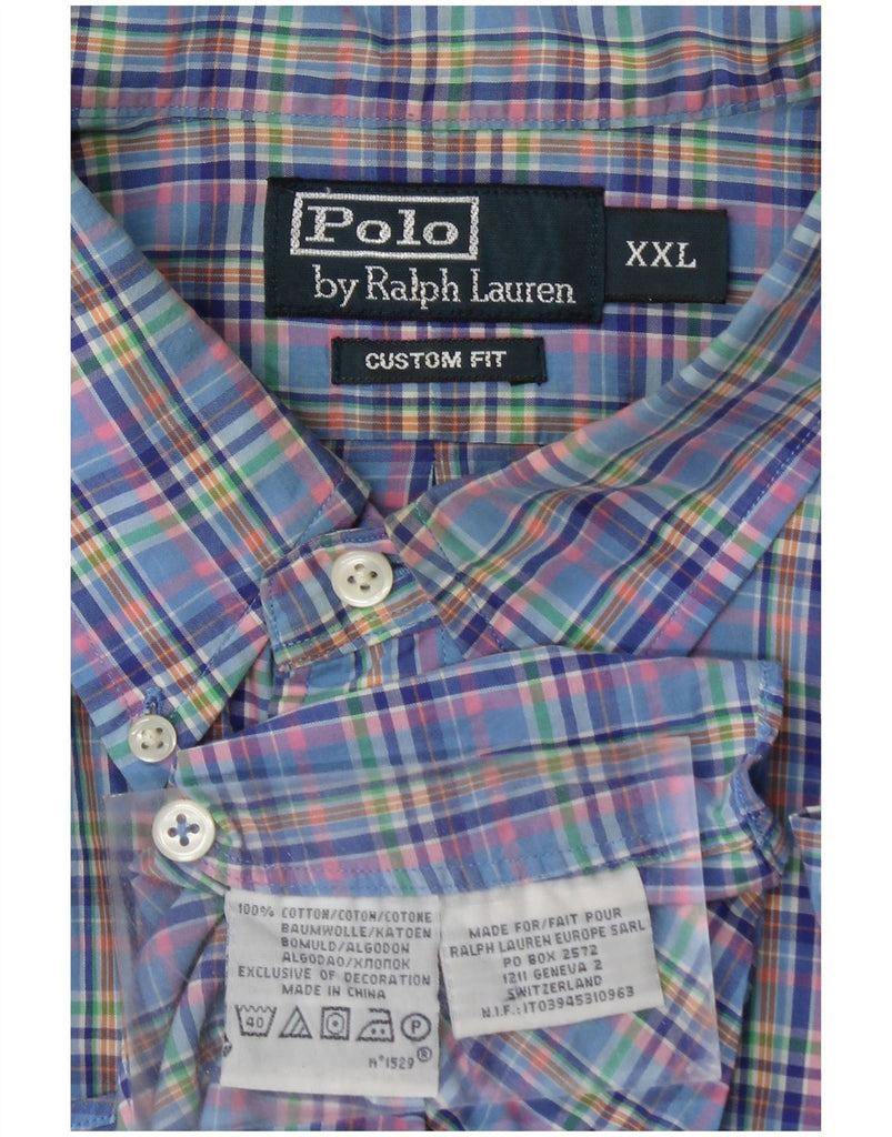 POLO RALPH LAUREN Mens Custom Fit Shirt 2XL Blue Check Cotton