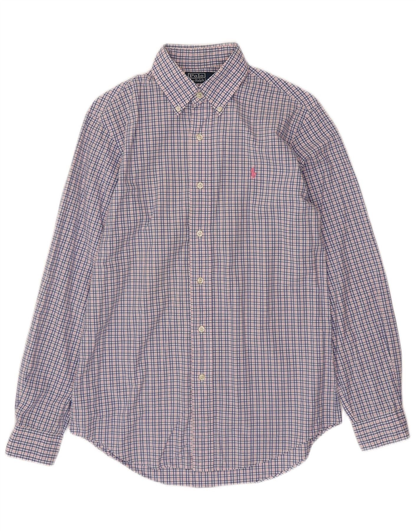 POLO RALPH LAUREN Mens Custom Fit Shirt Small Blue Check Cotton