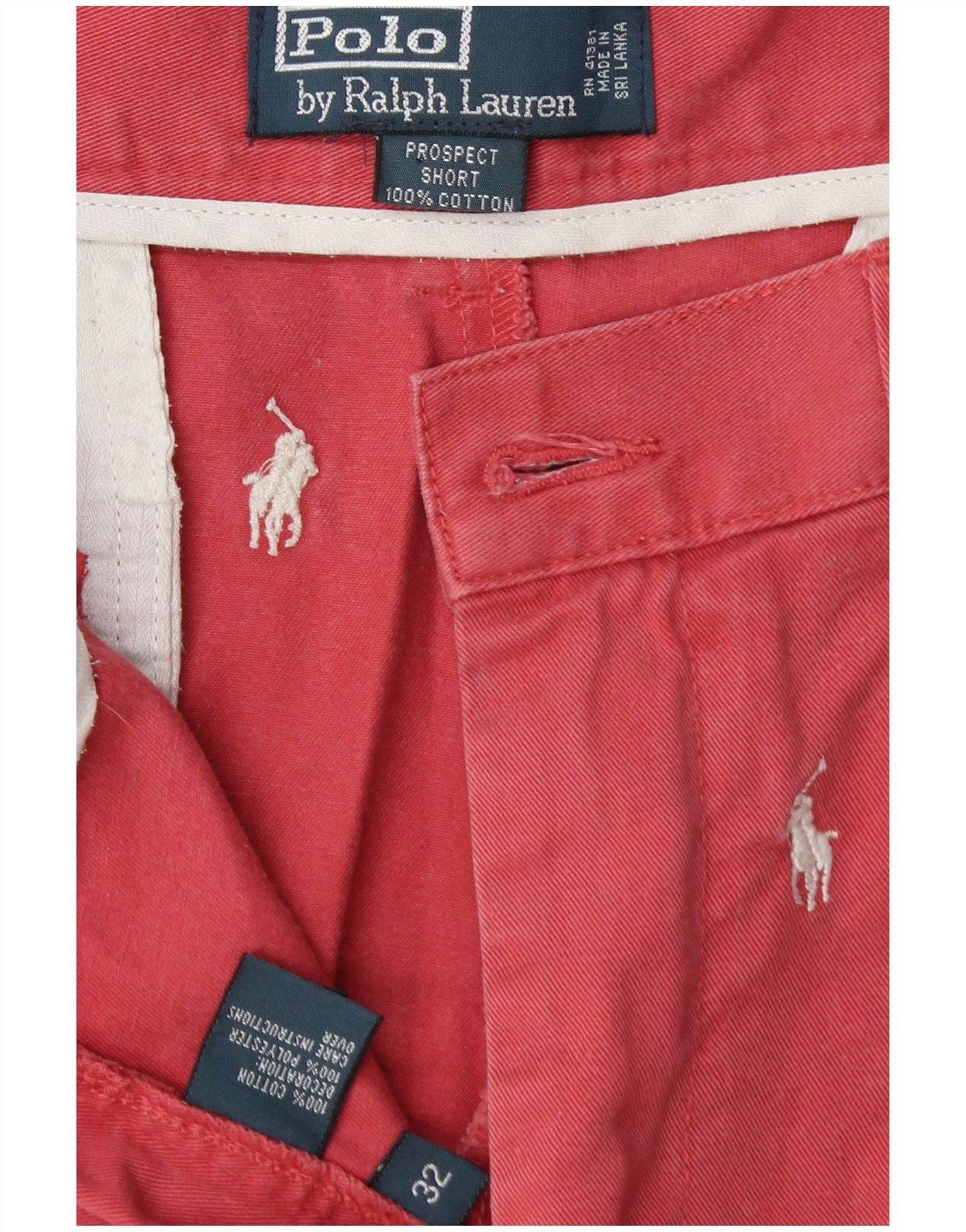 POLO RALPH LAUREN Mens Graphic Chino Shorts W32 Medium Pink Cotton Logo