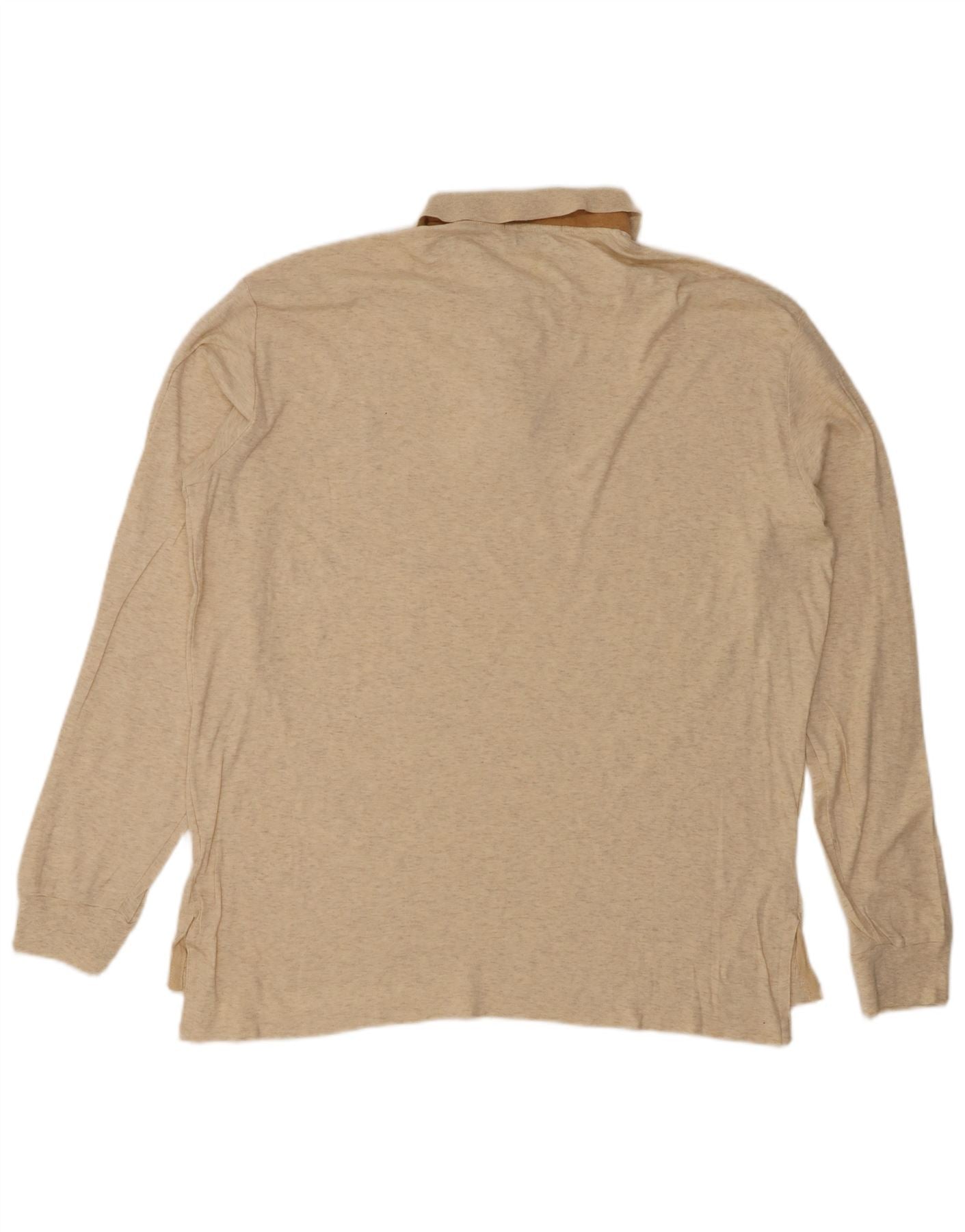 POLO RALPH LAUREN Mens Long Sleeve Polo Shirt Large Beige Flecked Cotton