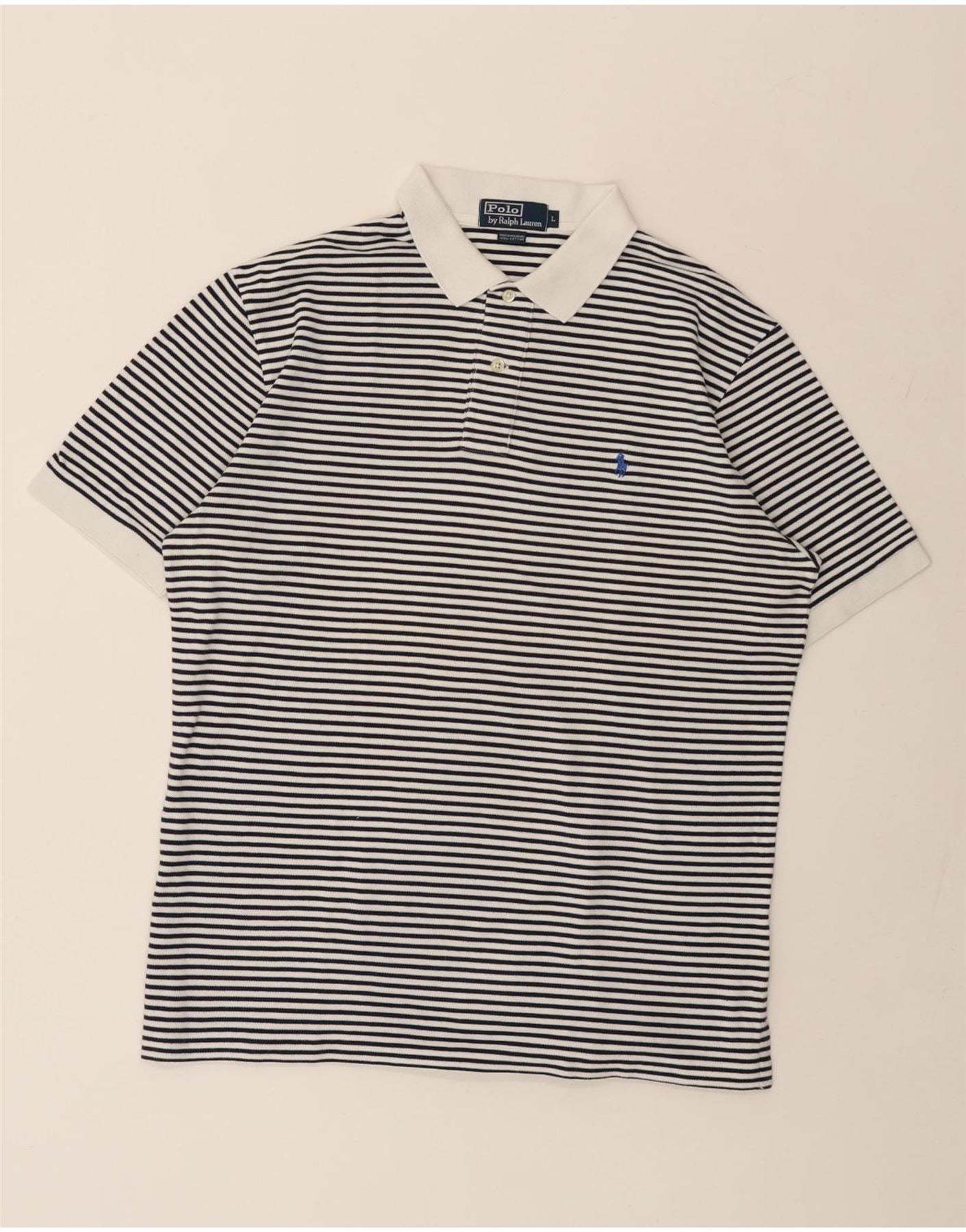 POLO RALPH LAUREN Mens Polo Shirt Large White Pinstripe Cotton