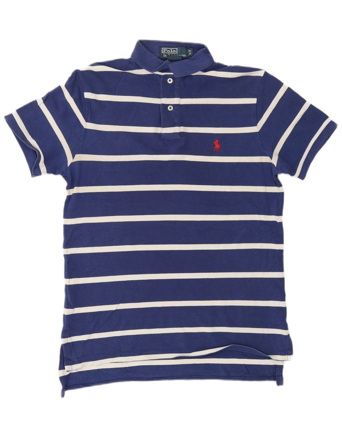 POLO RALPH LAUREN Mens Polo Shirt Small Navy Blue Striped Cotton