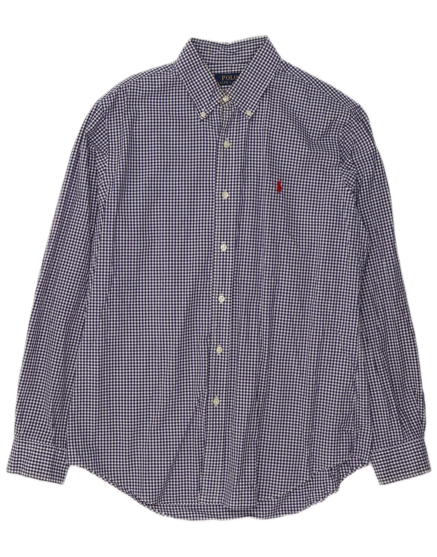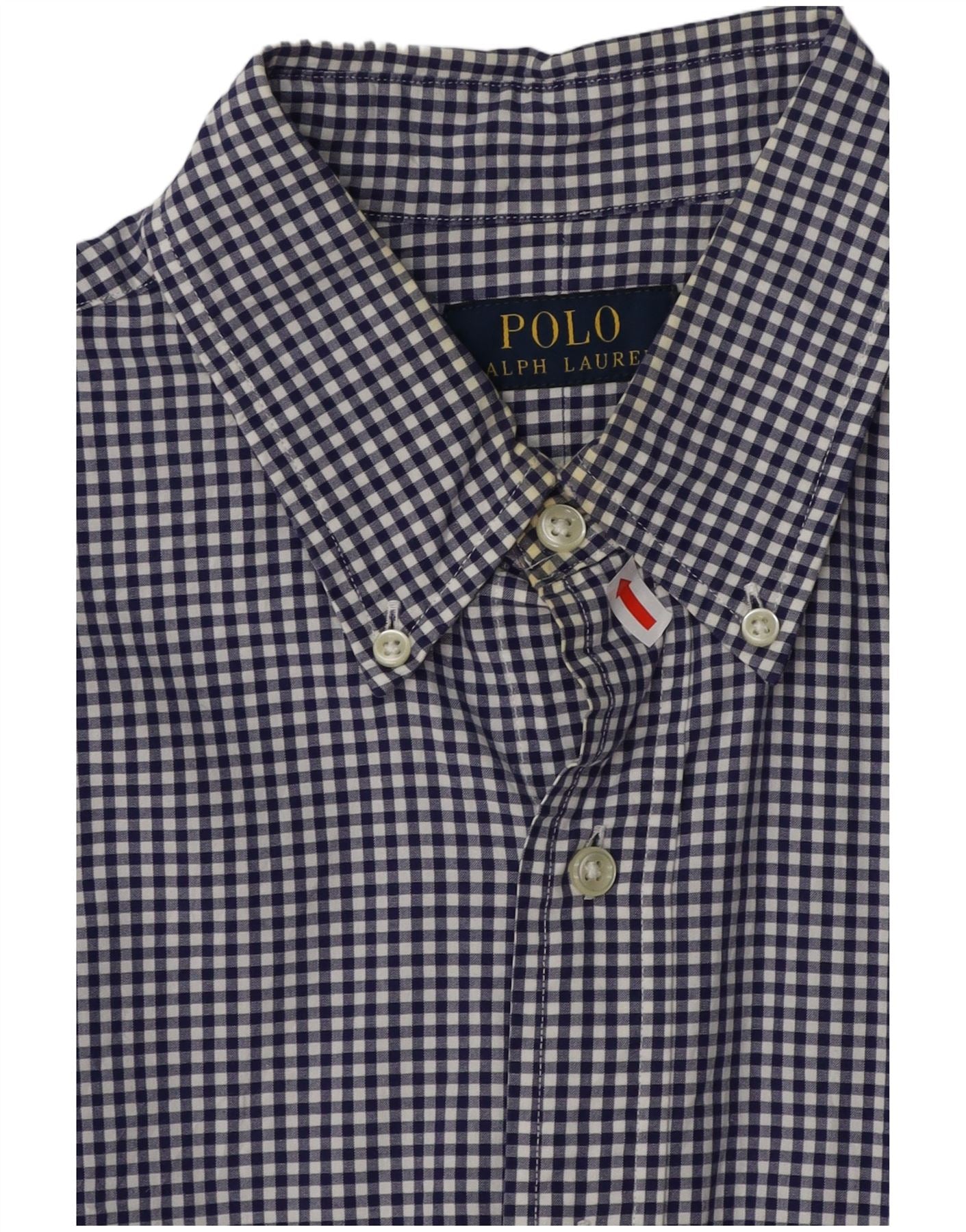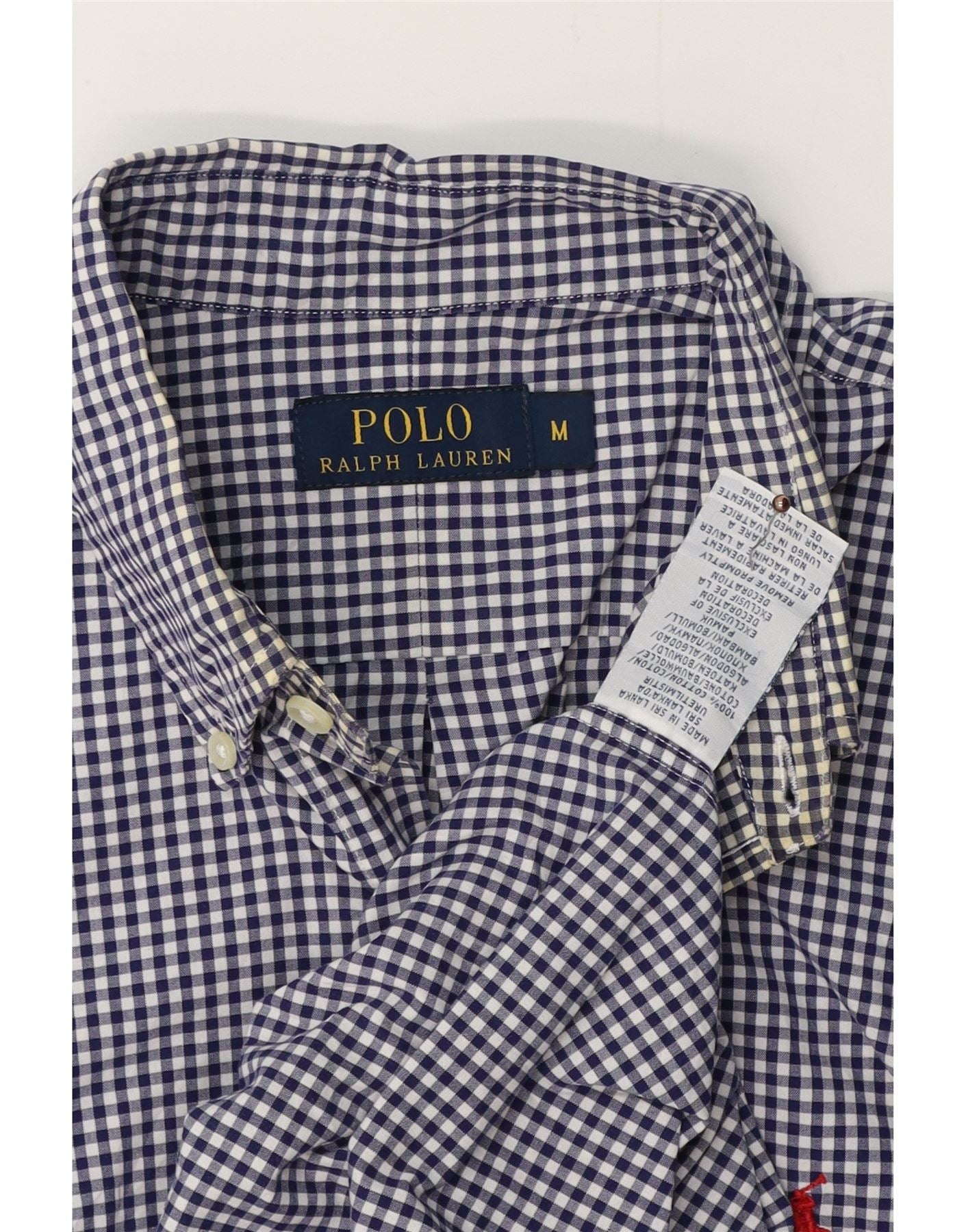 POLO RALPH LAUREN Mens Shirt Medium Navy Blue Gingham Cotton
