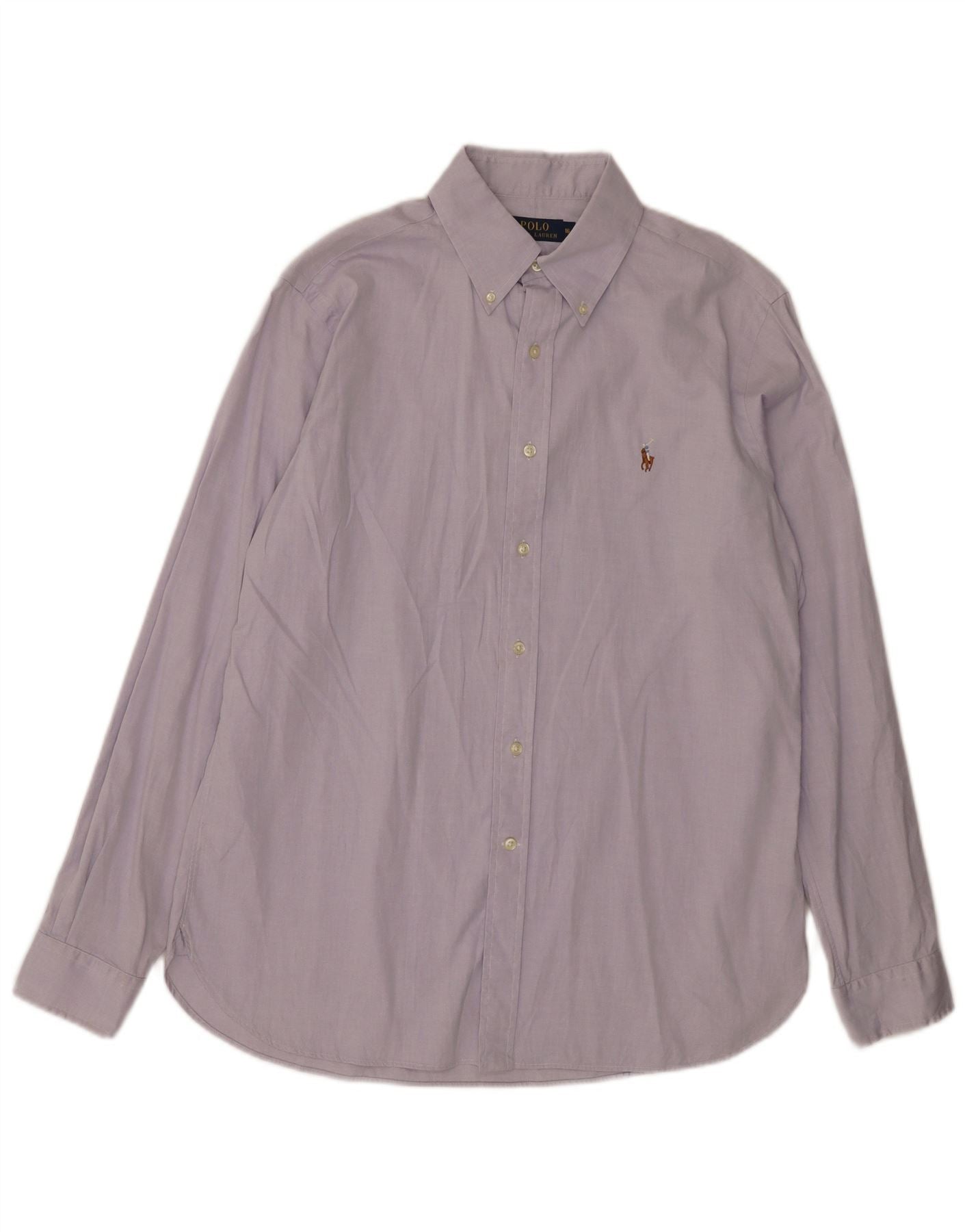 - AI Description: This Polo Ralph Lauren mens shirt is crafted from 100 percent woven cotton in a soft lilac hue. It features a classic collared neckline and a full button-up front. Long sleeves with buttoned cuffs complete the traditional silhouette. The regular fit ensures comfortable wear. An embroidered logo adds a signature touch. This timeless piece offers versatile style.