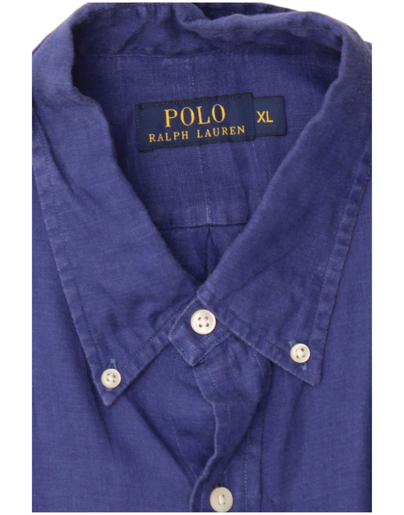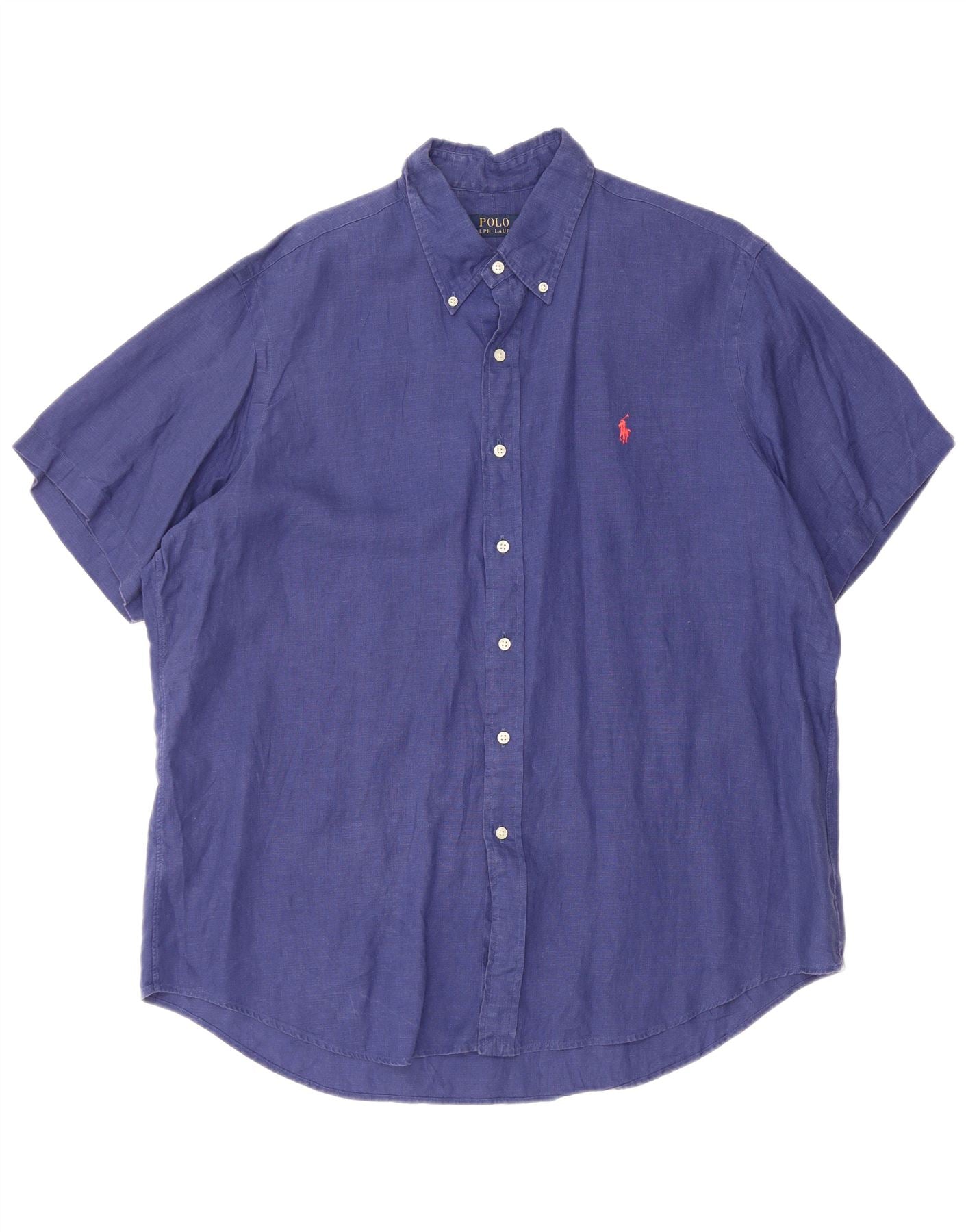 POLO RALPH LAUREN Mens Short Sleeve Shirt XL Navy Blue Linen