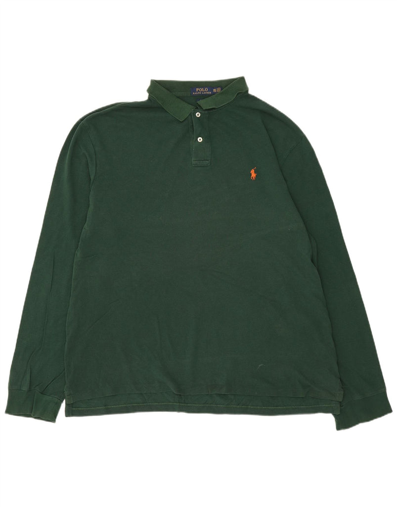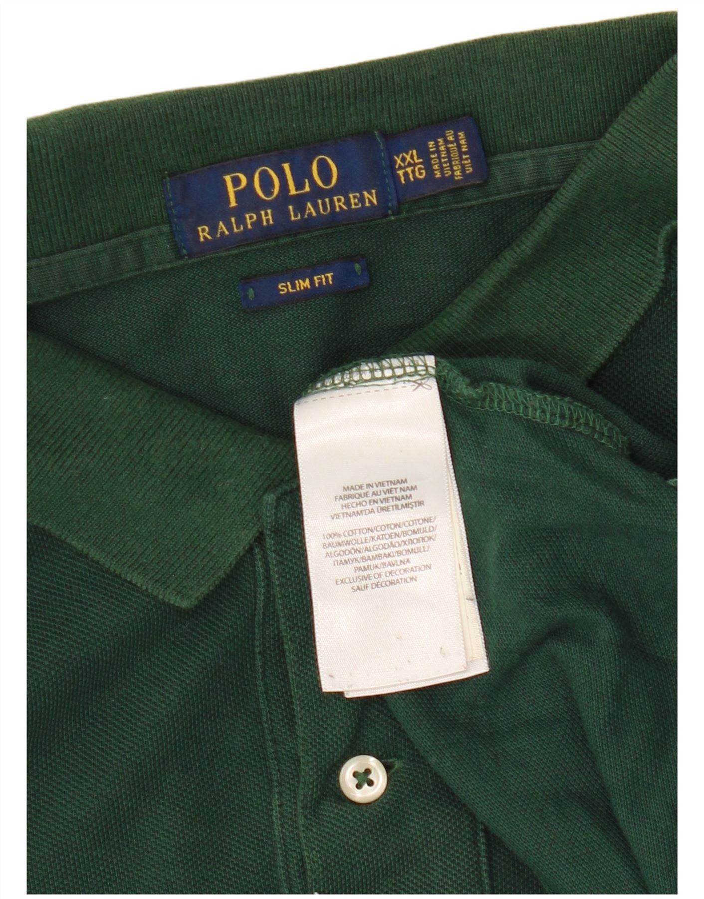 POLO RALPH LAUREN Mens Slim Fit Long Sleeve Polo Shirt 2XL Green Cotton