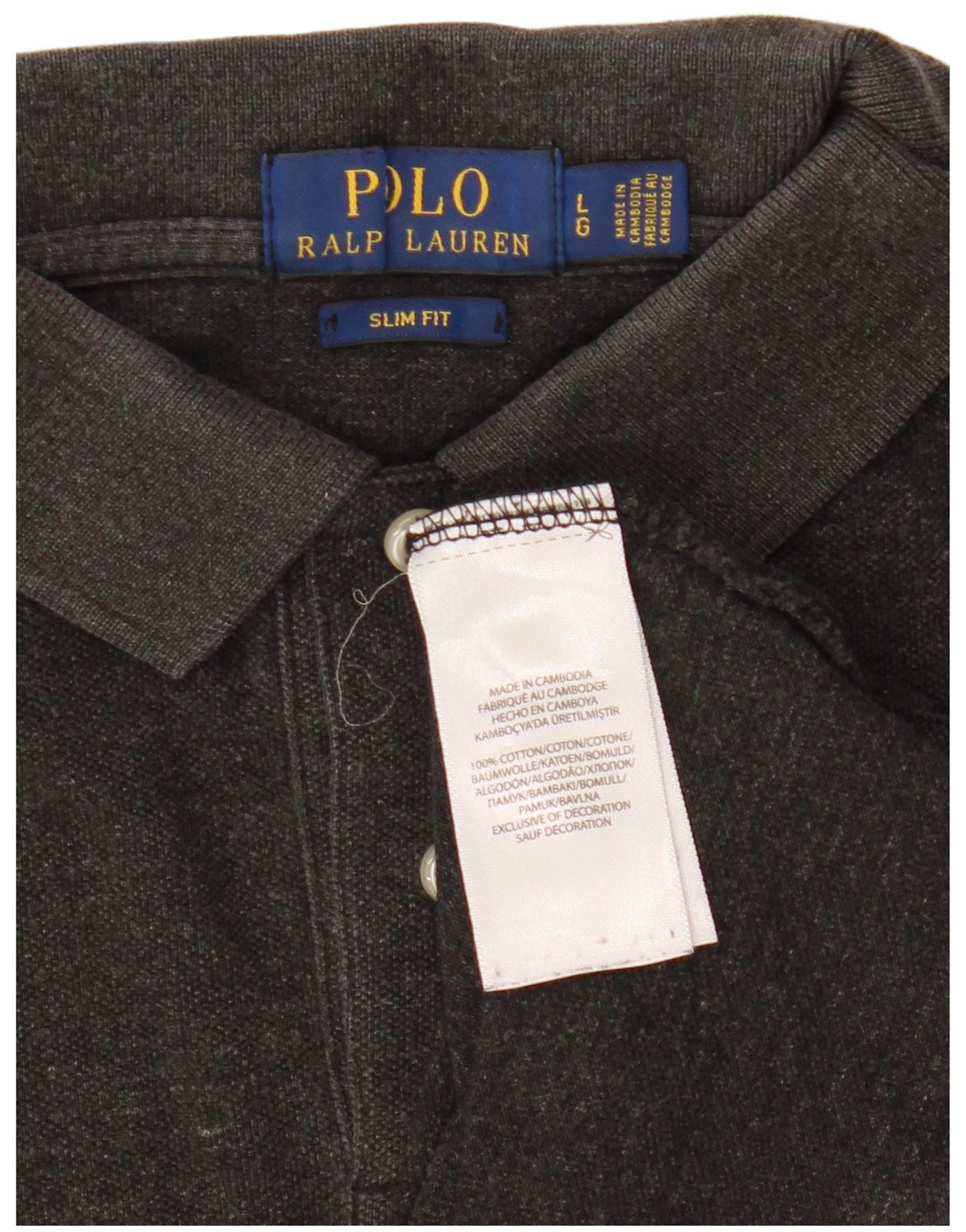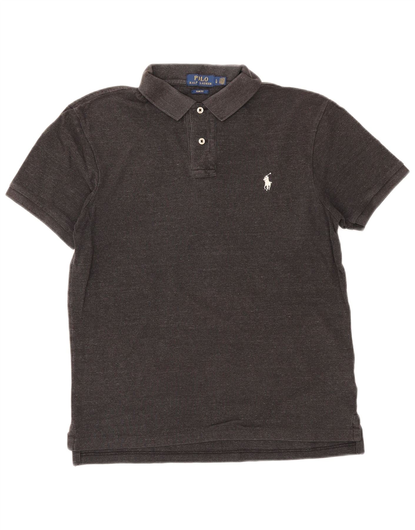 POLO RALPH LAUREN Mens Slim Fit Polo Shirt Large Grey Cotton