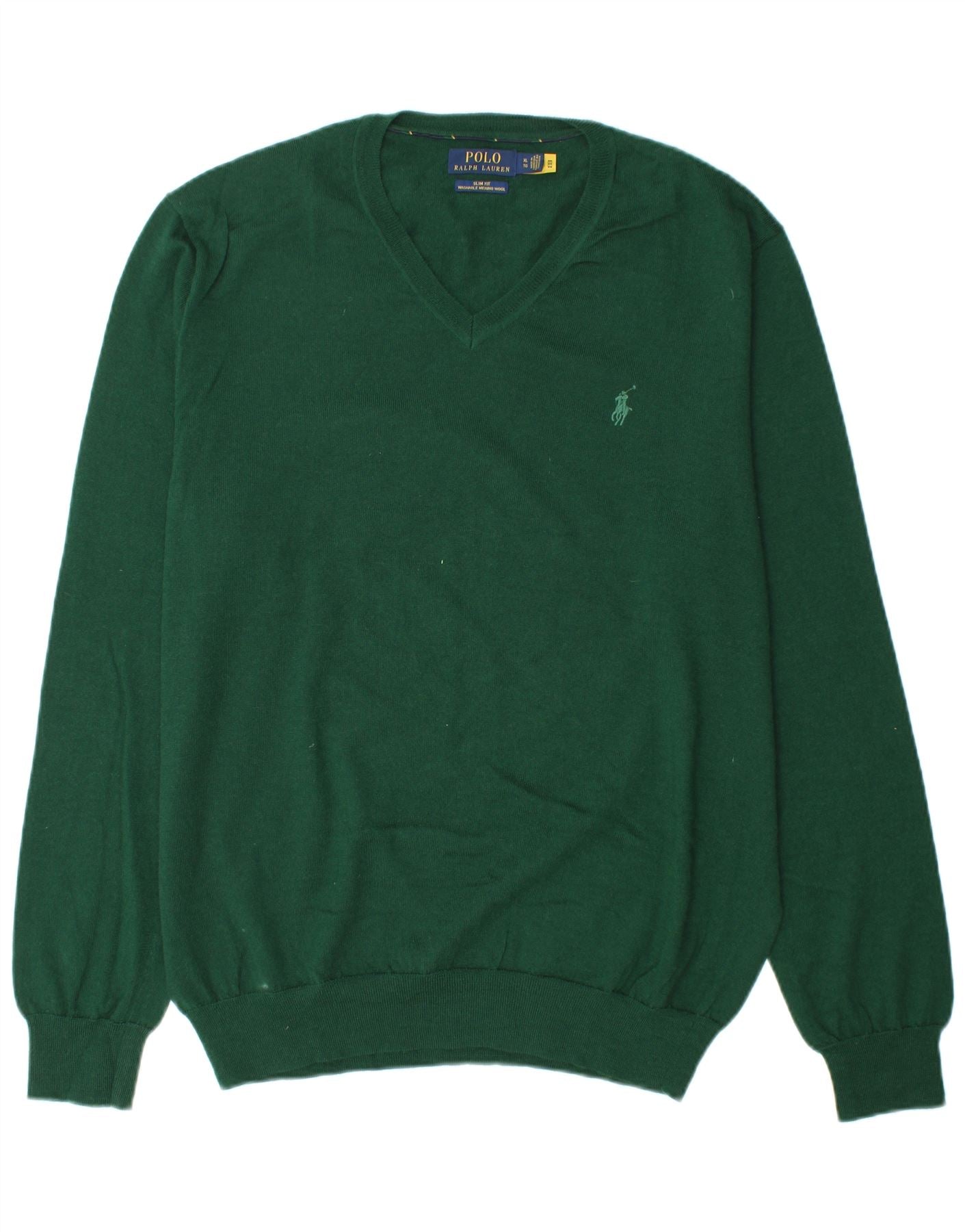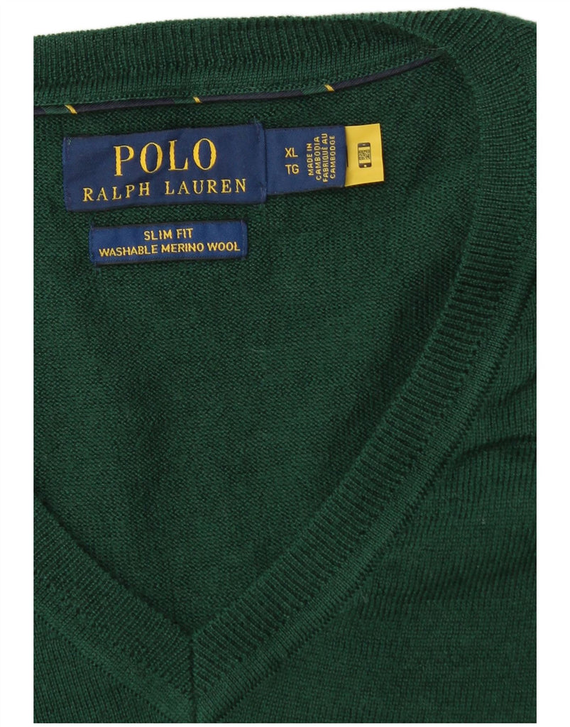 POLO RALPH LAUREN Mens Slim Fit V-Neck Jumper Sweater XL Green Wool