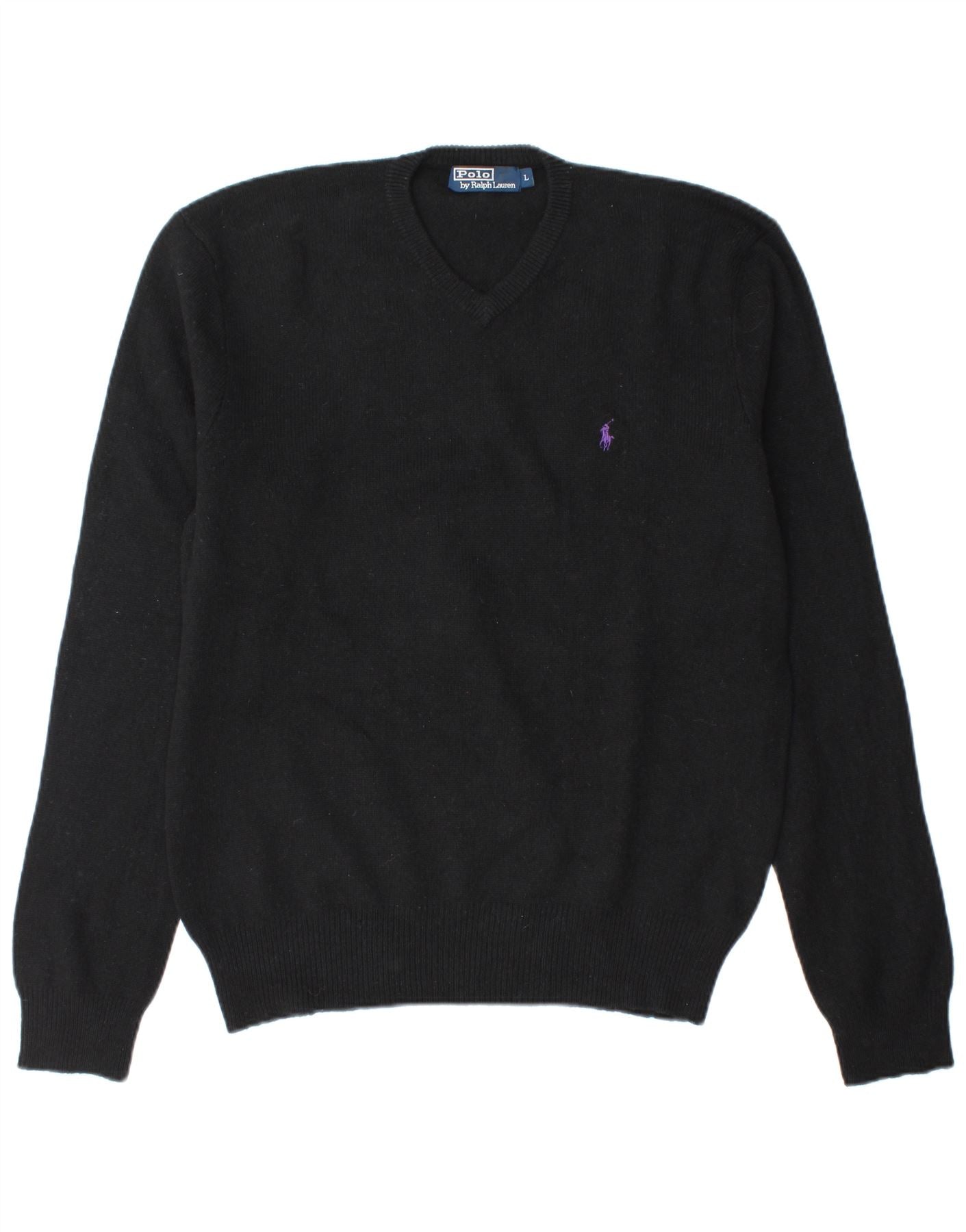 Polo Ralph Lauren Mens V-Neck Jumper Sweater Large Black Lambswool