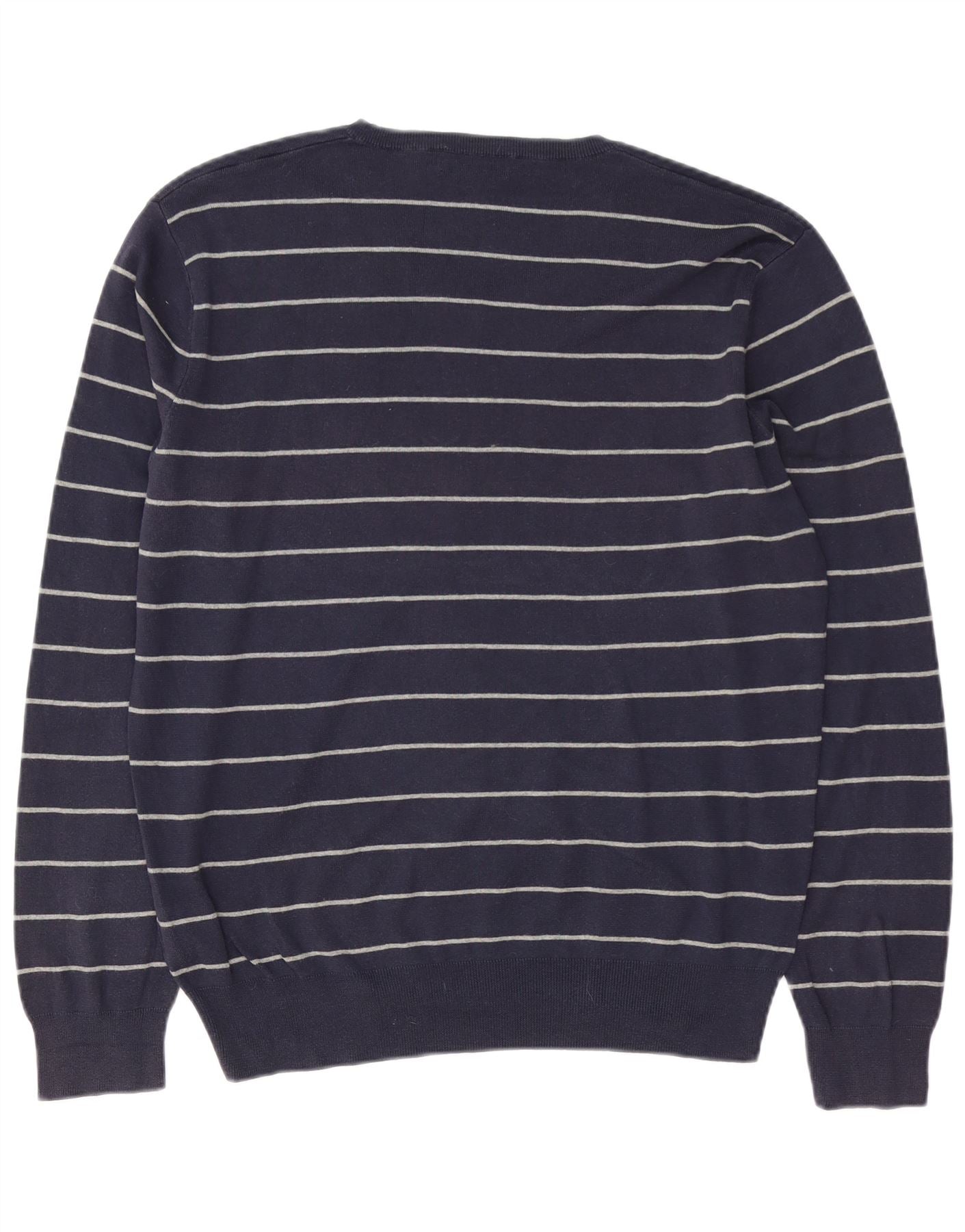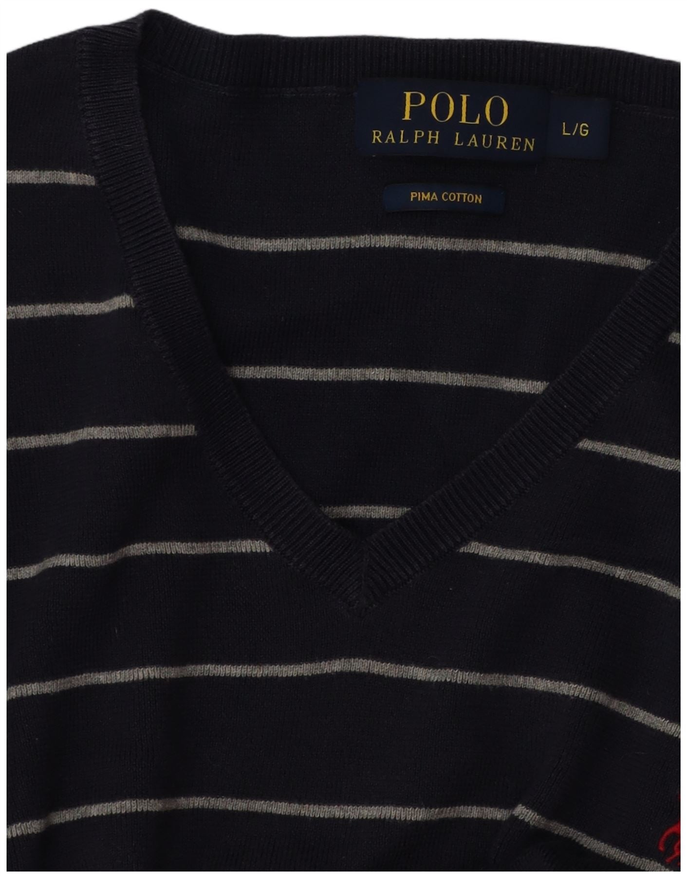 POLO RALPH LAUREN Mens V-Neck Jumper Sweater Large Navy Blue Striped