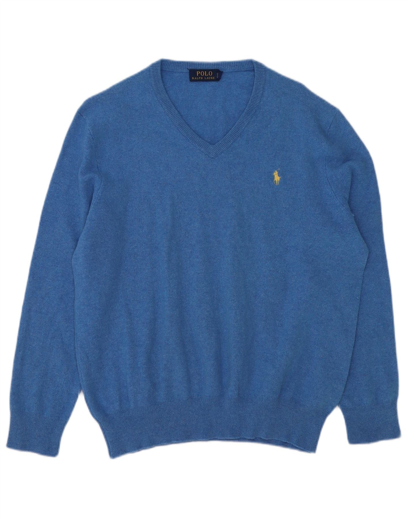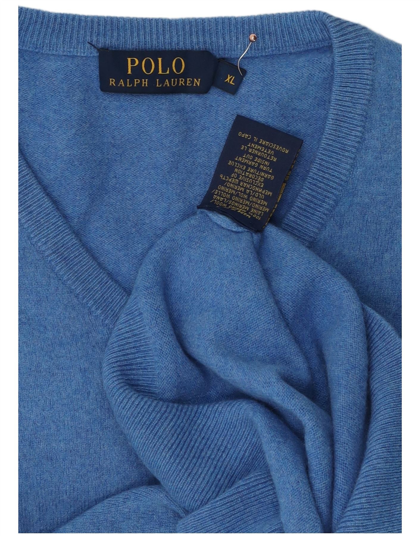 POLO RALPH LAUREN Mens V-Neck Jumper Sweater XL Blue Merino Wool