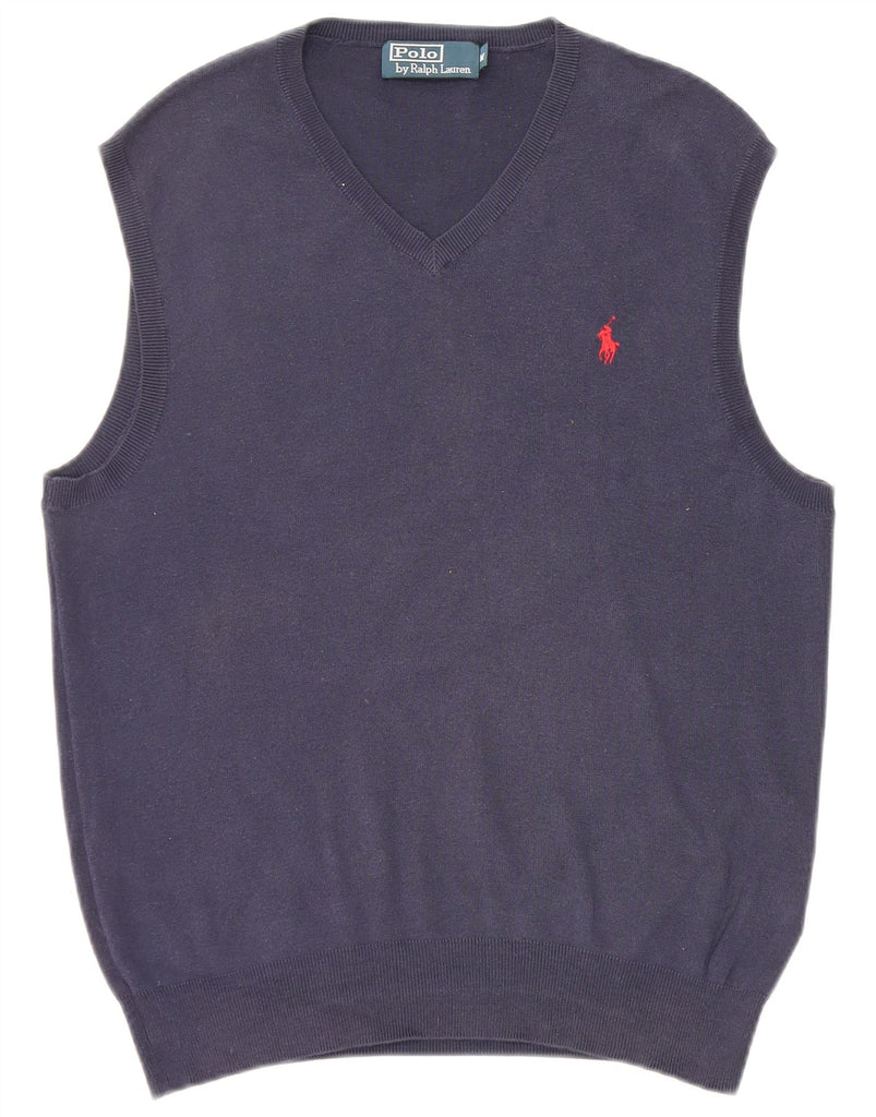 POLO RALPH LAUREN Mens Vest Tank Top Medium Navy Blue Cotton