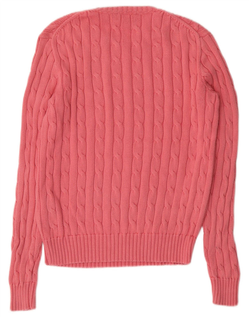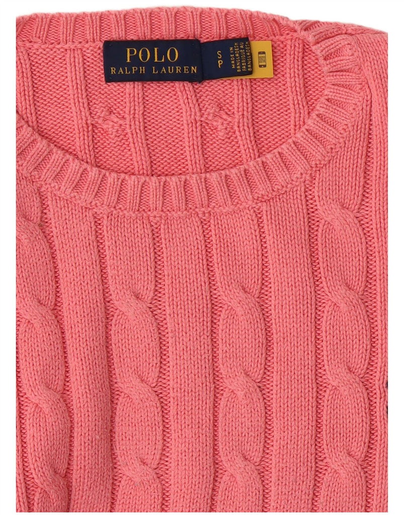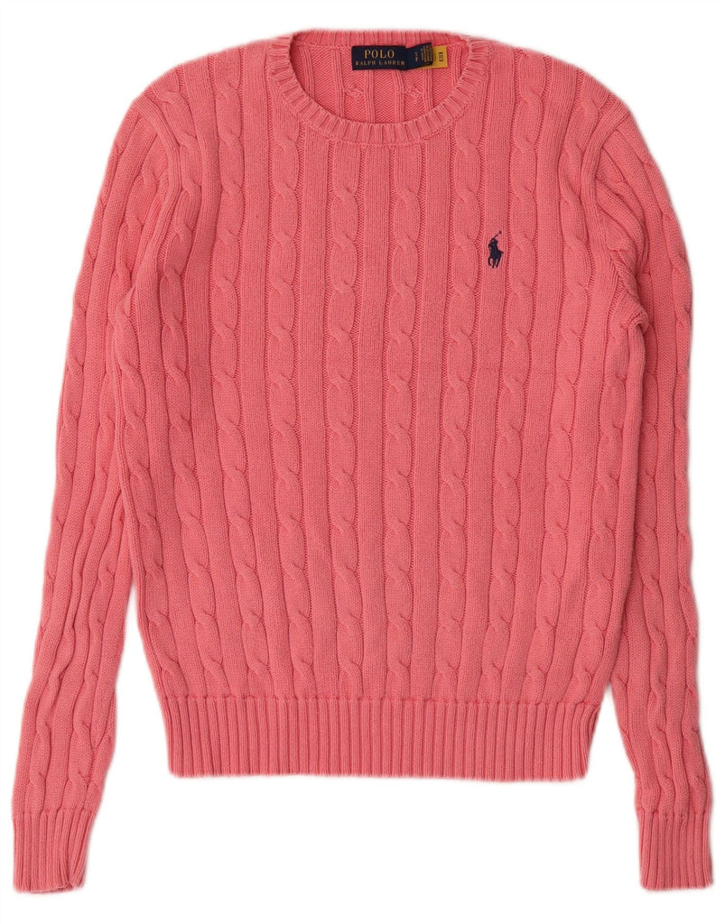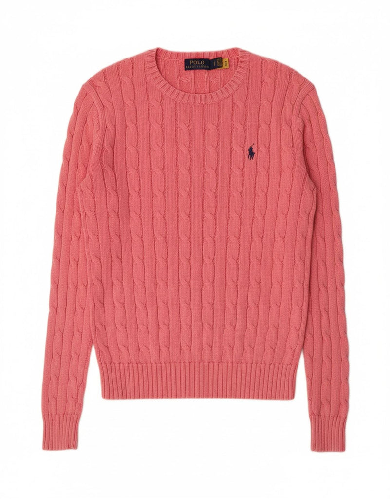 POLO RALPH LAUREN Womens Crew Neck Jumper Sweater UK 10 Small Pink Cotton