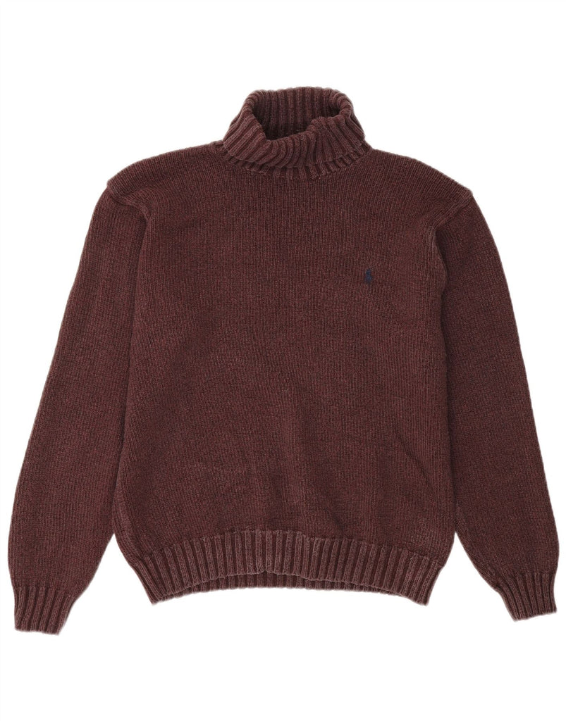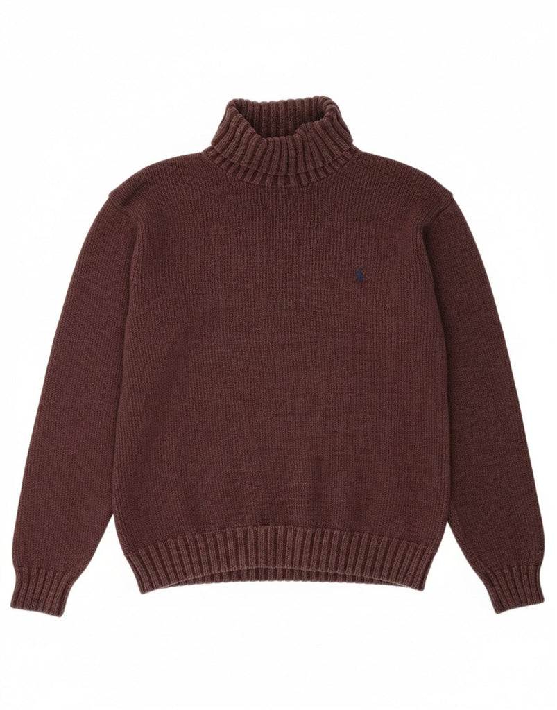 POLO RALPH LAUREN Womens Roll Neck Jumper Sweater UK 14 Medium Brown
