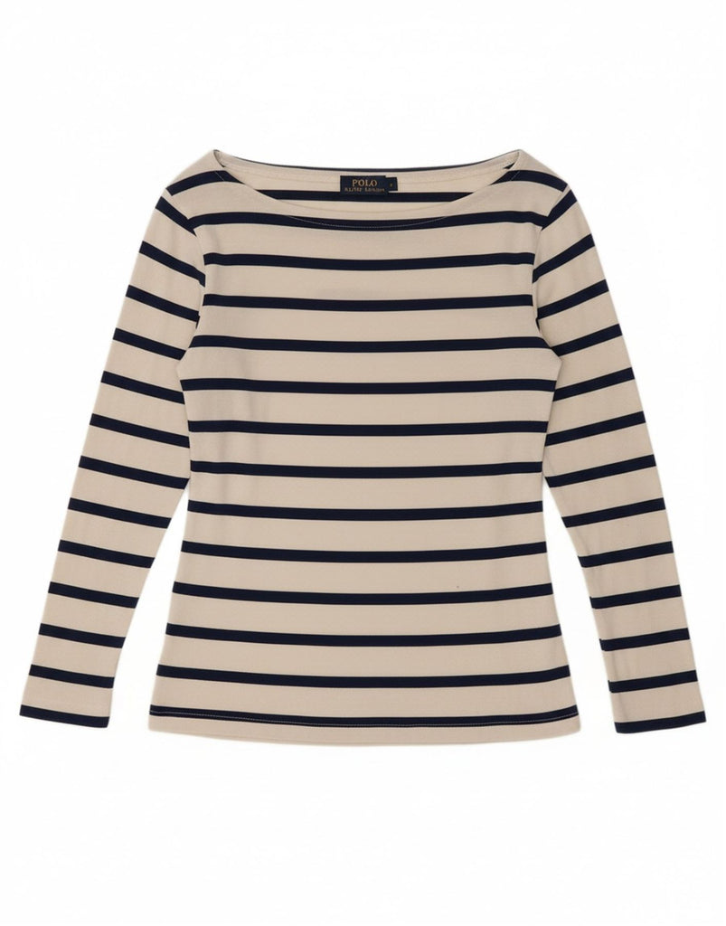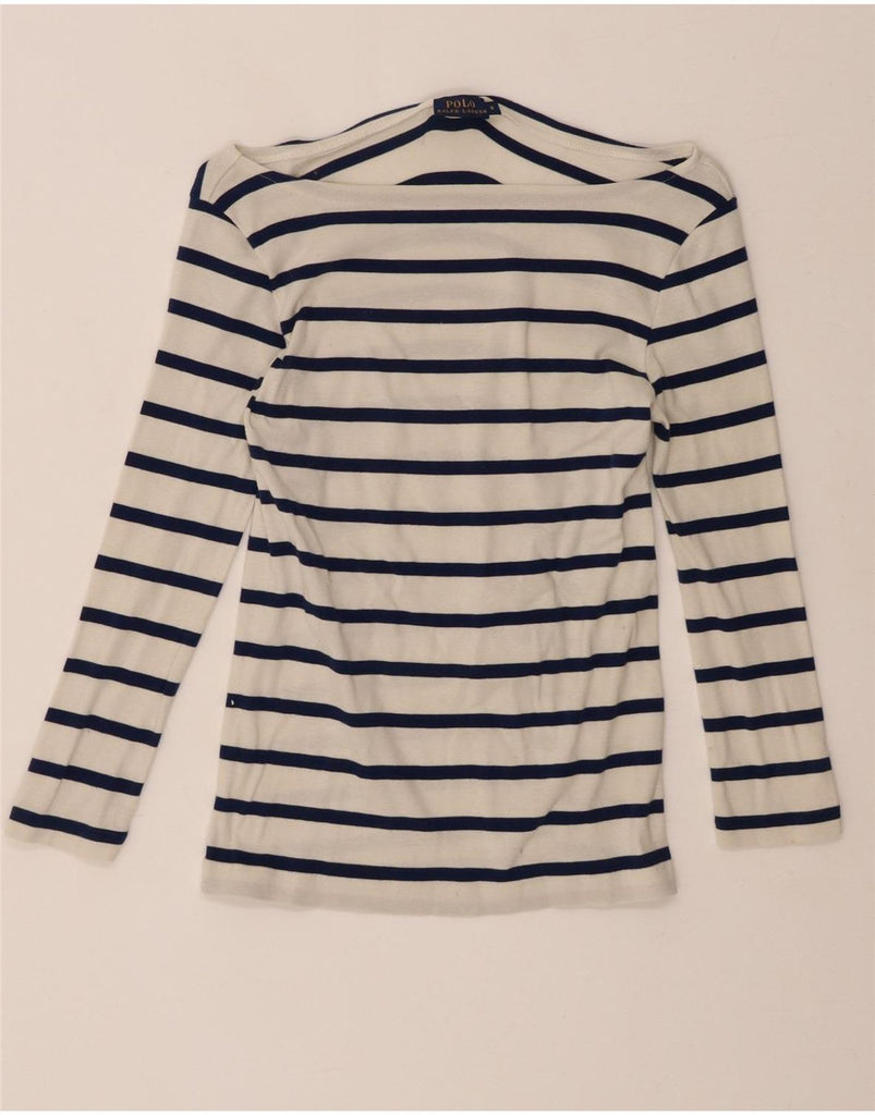 POLO RALPH LAUREN Womens Top 3/4 Sleeve UK 10 Small White Striped Nautical