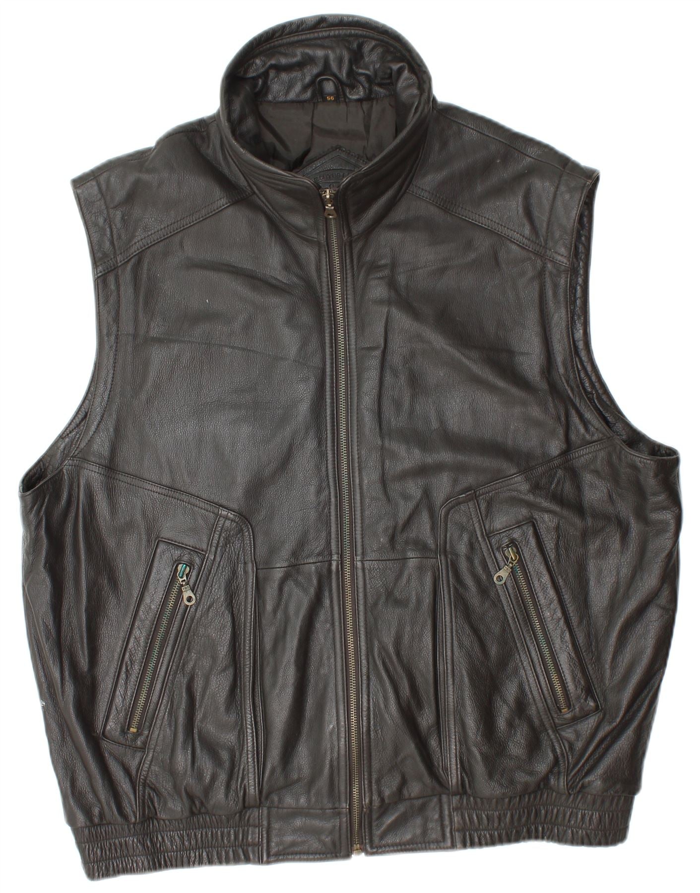 PRINCE Mens Leather Gilet IT 56 3XL Black Leather