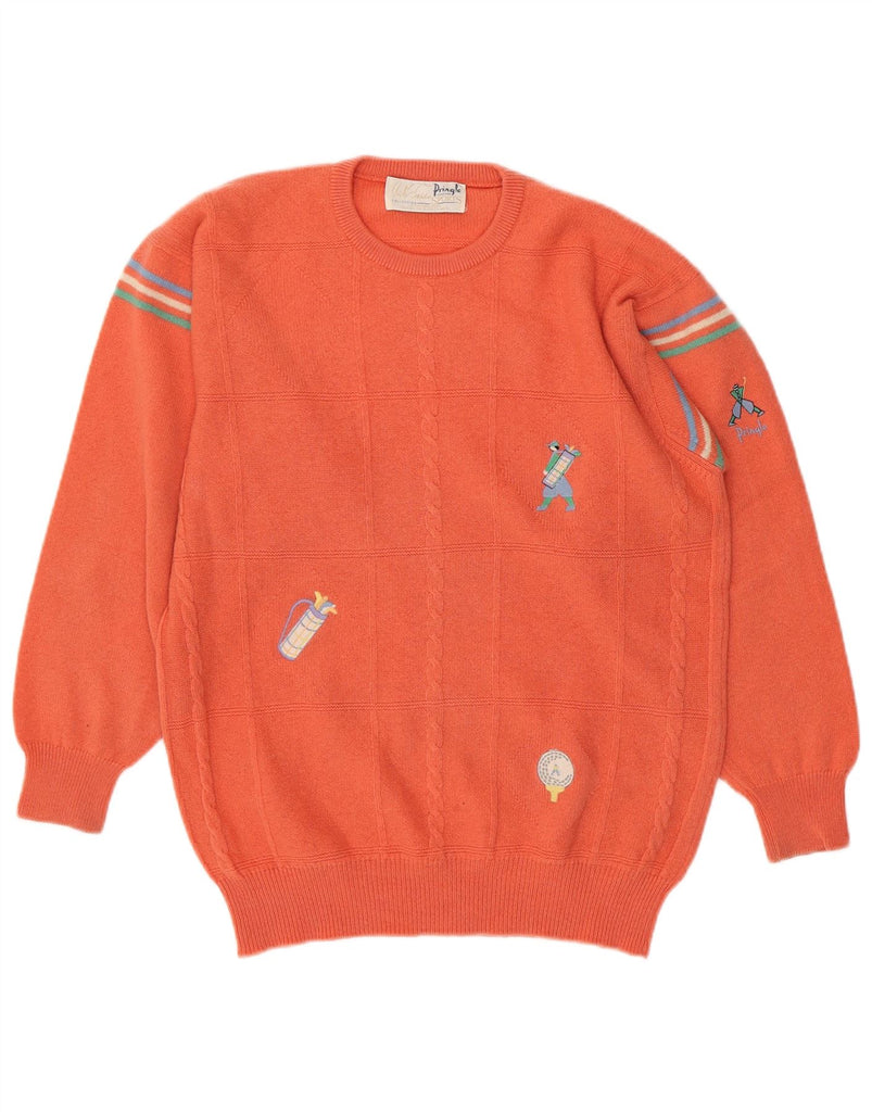 PRINGLE Mens Abstract Pattern Crew Neck Jumper Sweater Small Orange Wool