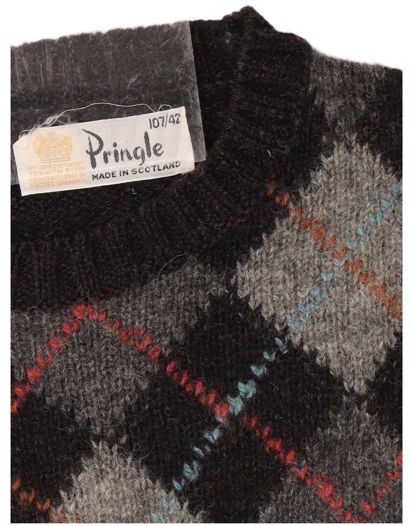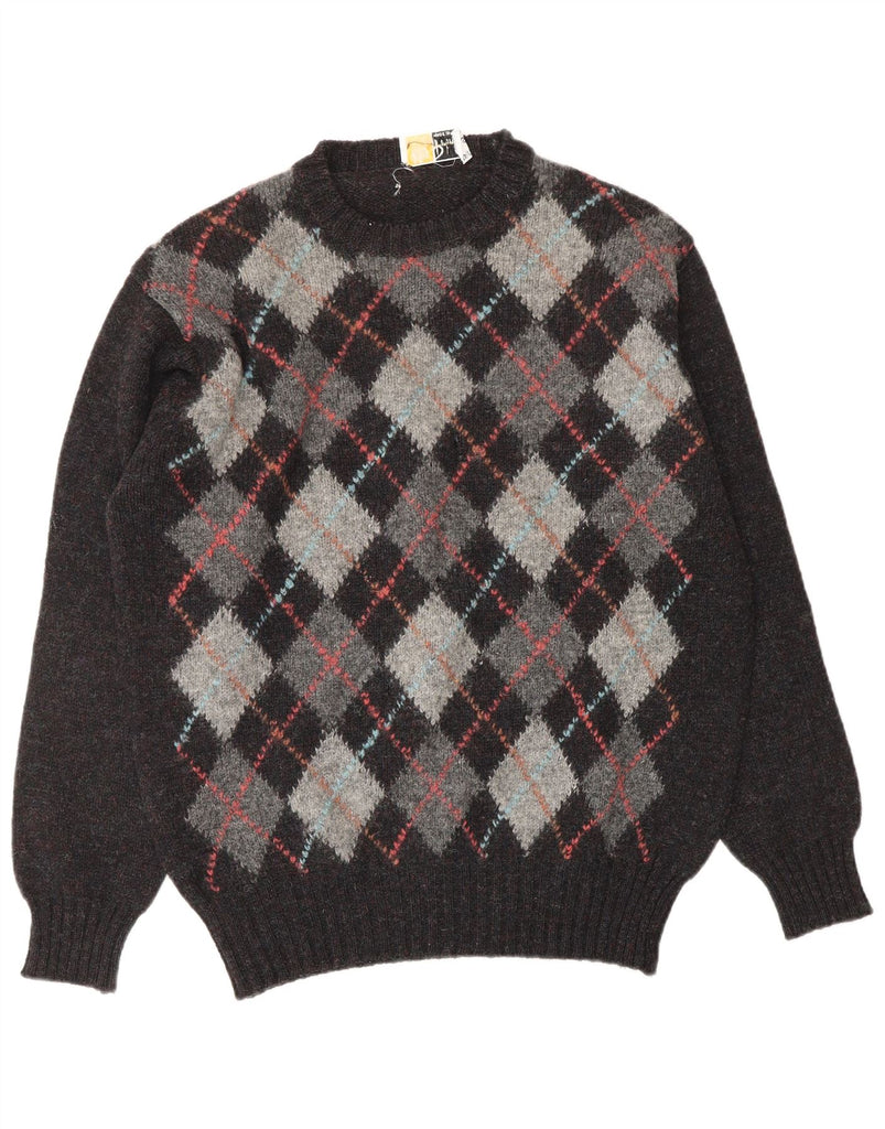 PRINGLE Mens Crew Neck Jumper Sweater UK 42 Large Grey Argyle/Diamond Wool