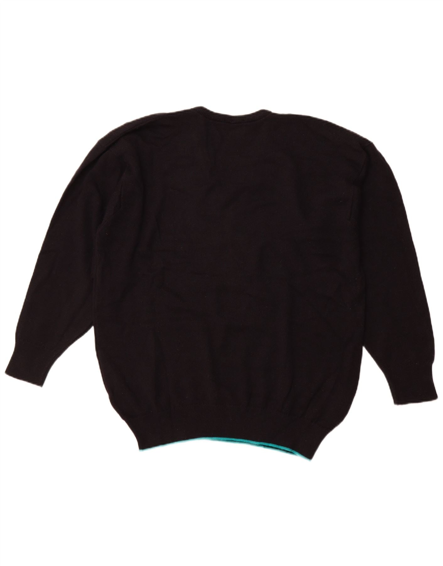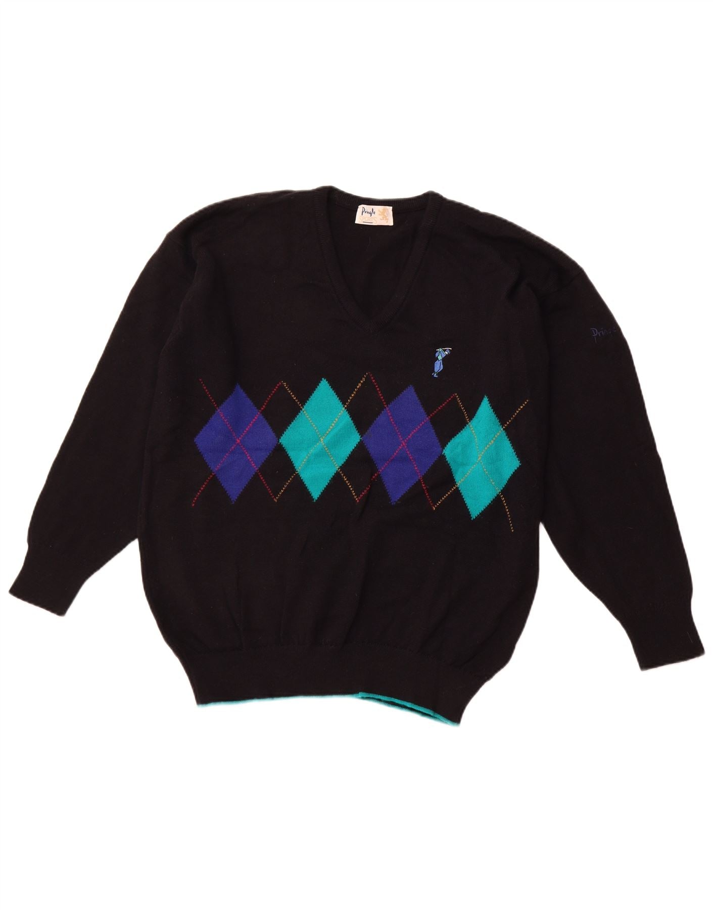 PRINGLE Mens V-Neck Jumper Sweater XL Black Argyle/Diamond Acrylic