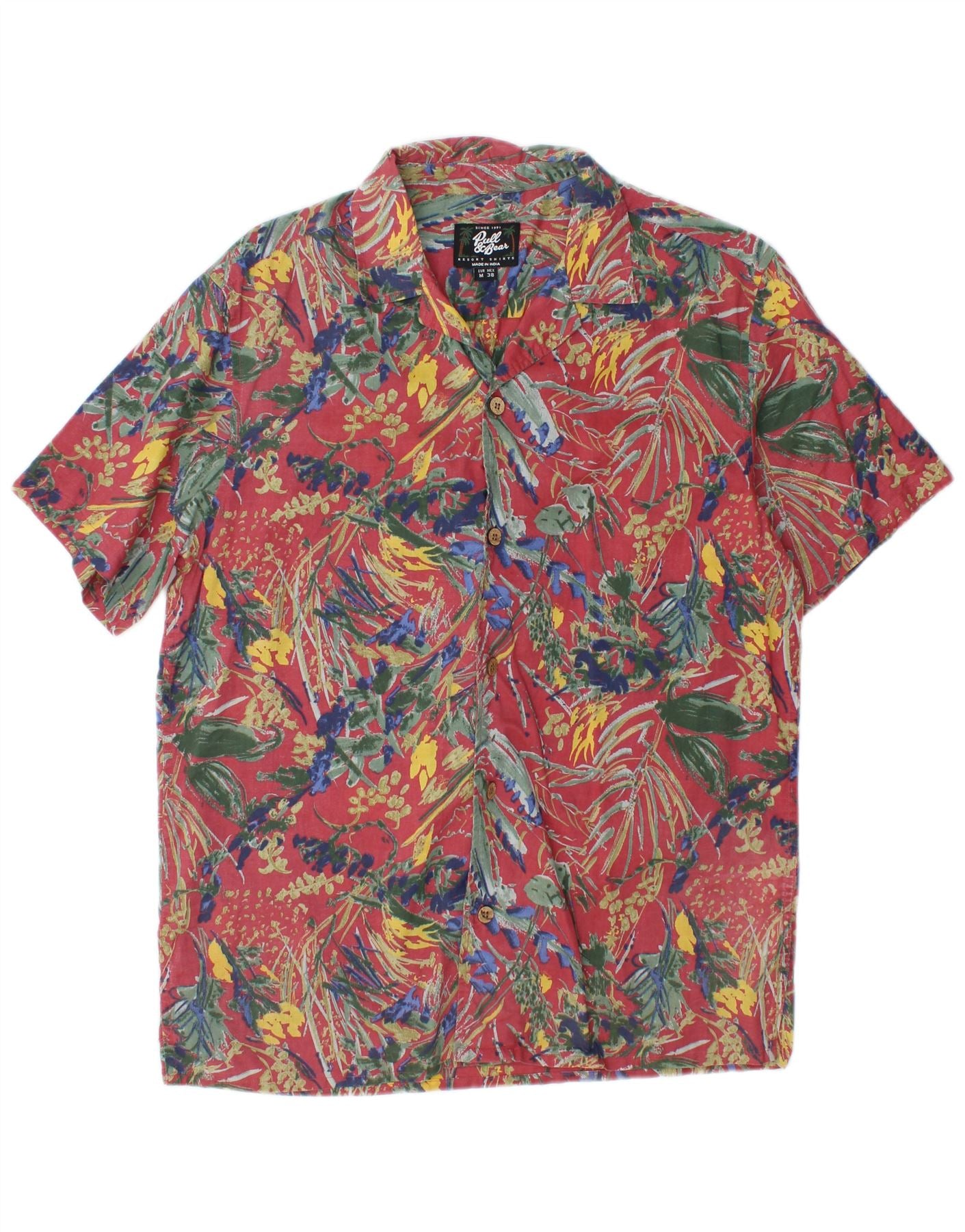 PULL & BEAR Mens Short Sleeve Shirt Medium Pink Floral Cotton