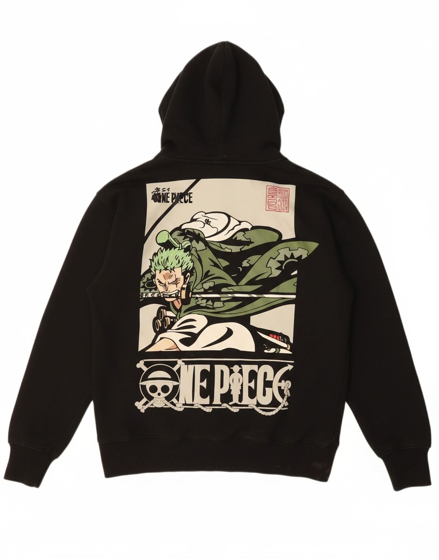 PULL & BEAR Mens x One Piece Graphic Hoodie Jumper Small Black Polyester