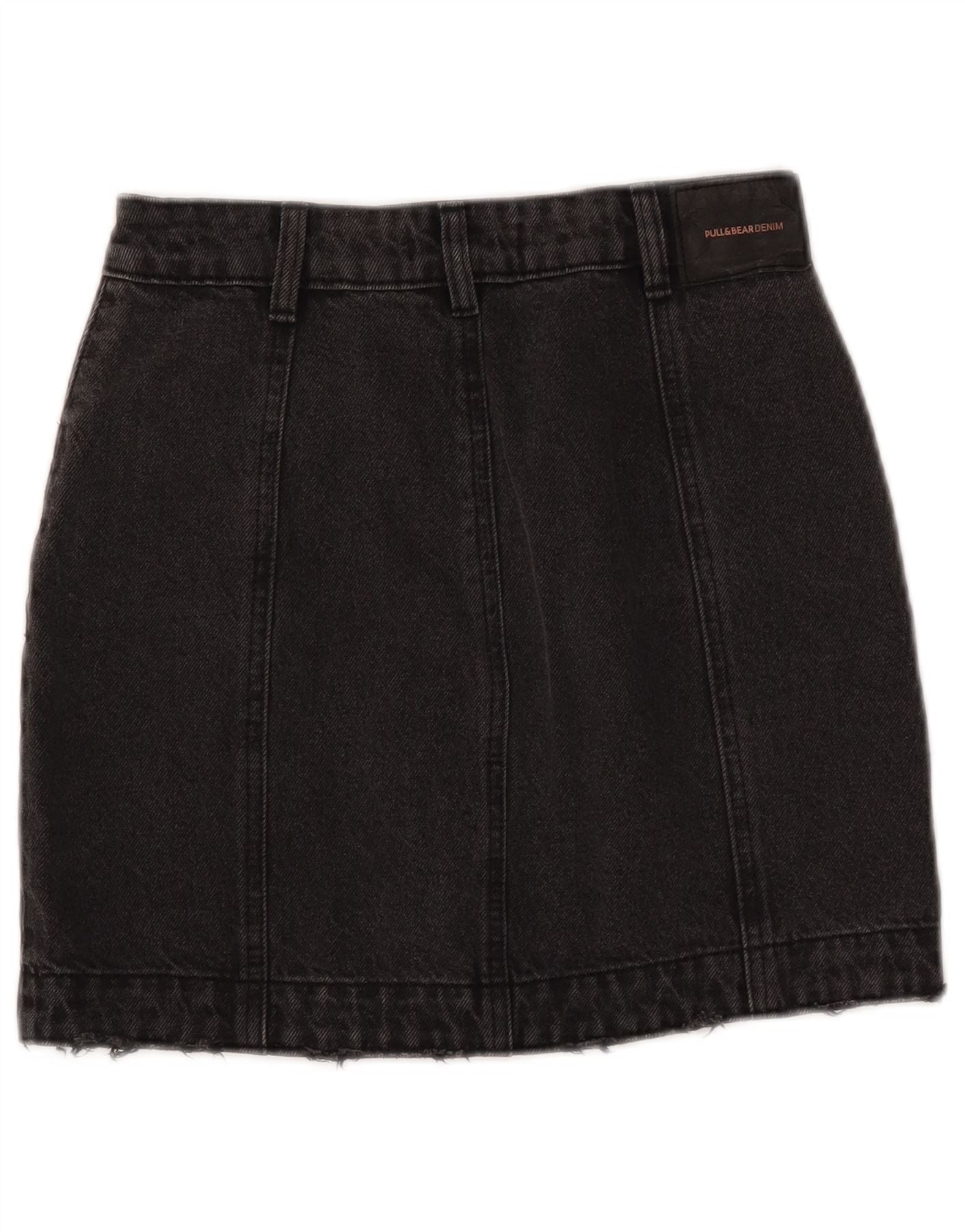 PULL & BEAR Womens Distressed Denim Skirt Small W26 Black Cotton
