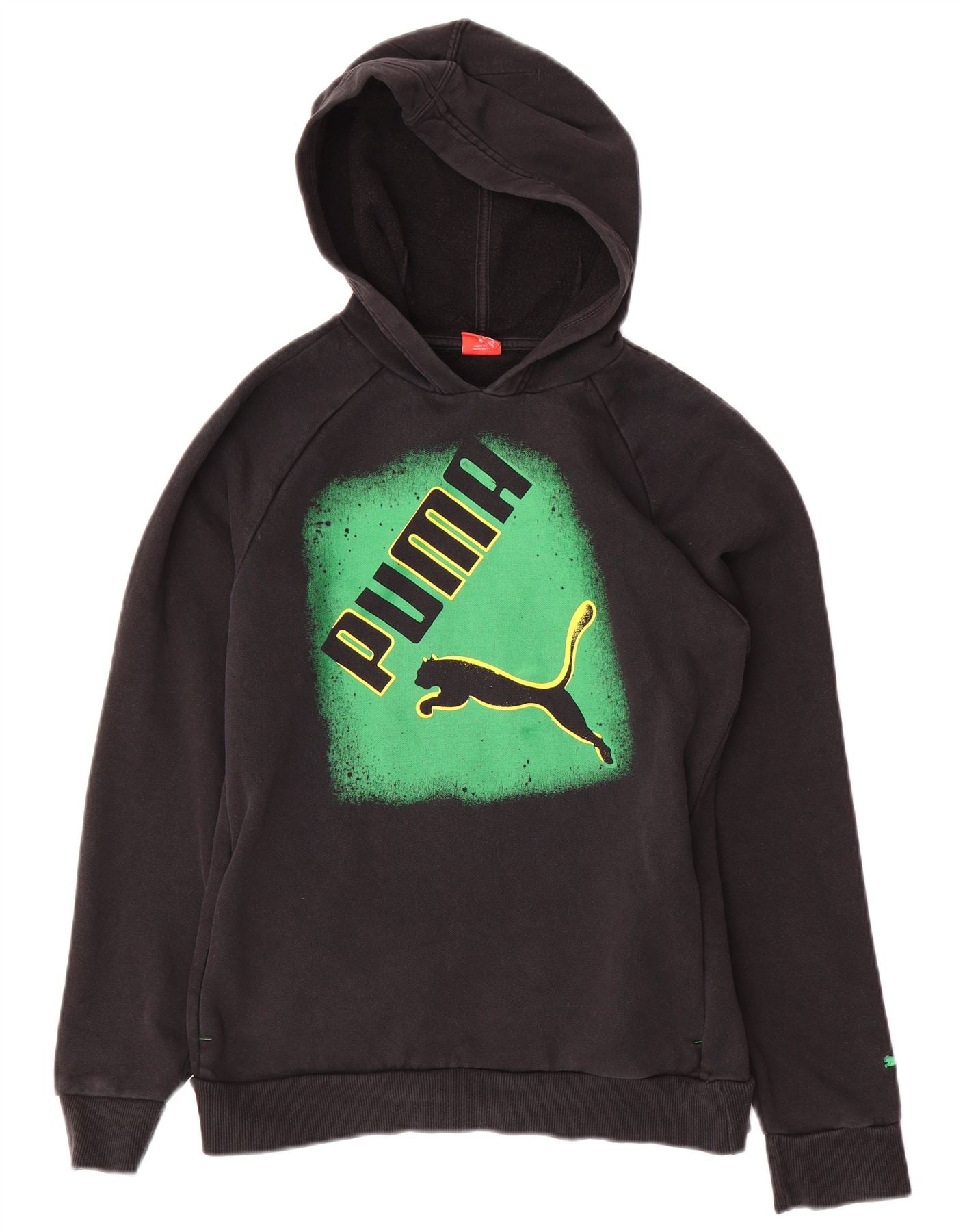 PUMA Boys Graphic Hoodie Jumper 13-14 Years Black Colourblock