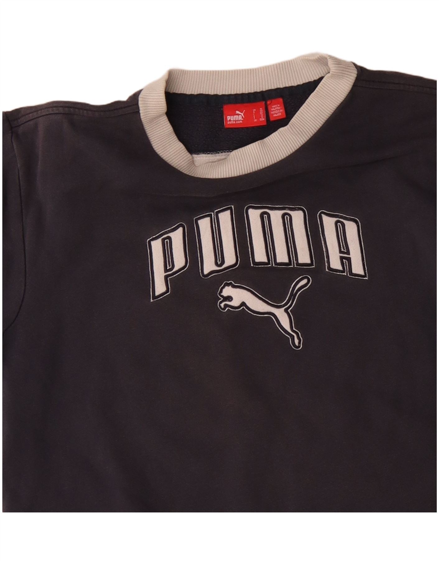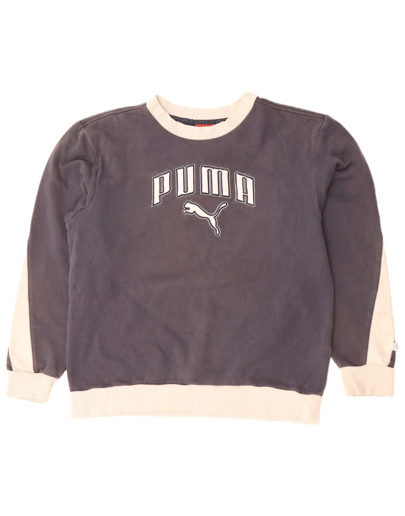 PUMA Boys Graphic Sweatshirt Jumper 13-14 Years Grey Colourblock Cotton