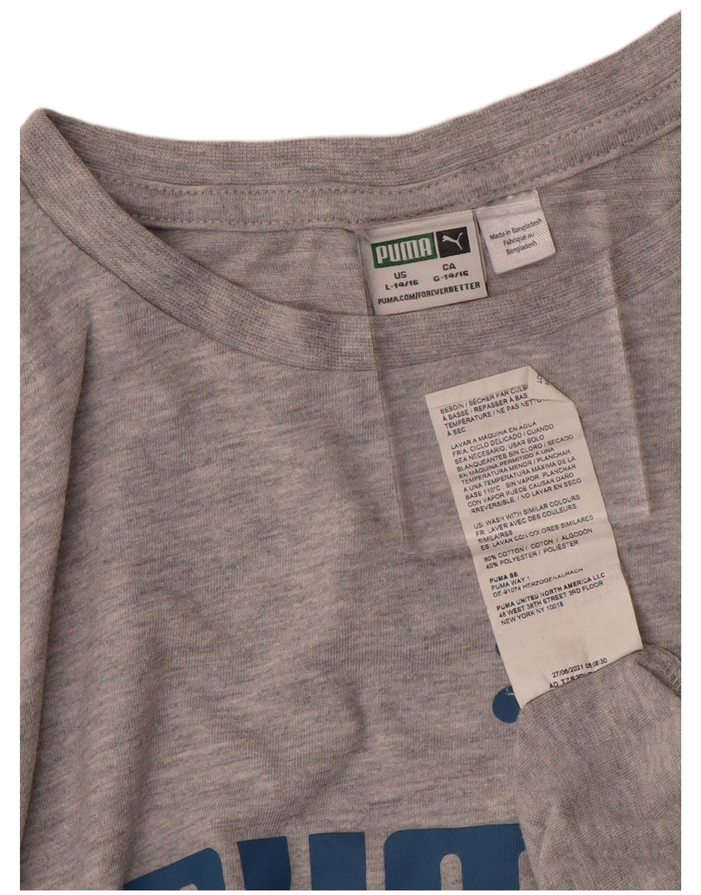 PUMA Boys Graphic T-Shirt Top 14-15 Years Large Grey Cotton