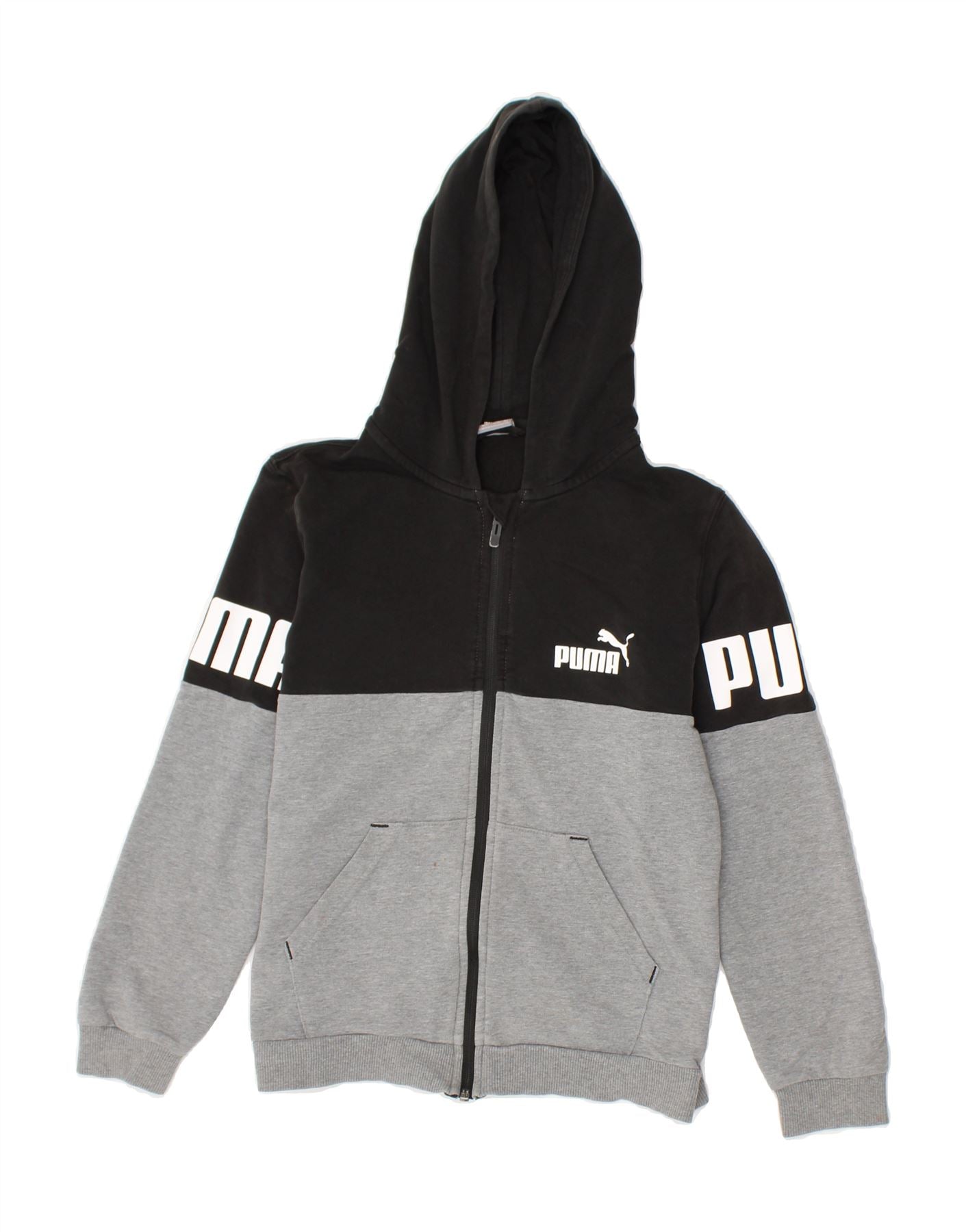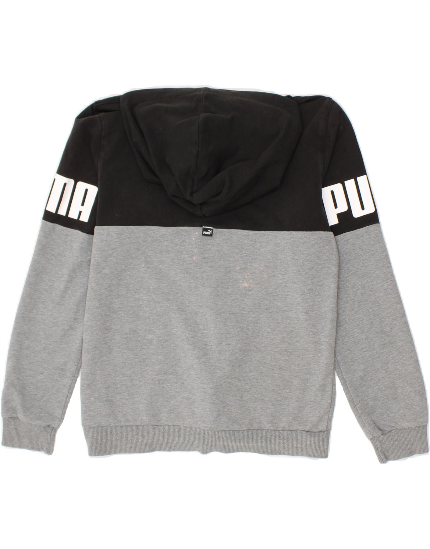 PUMA Boys Graphic Zip Hoodie Sweater 11-12 Years Grey Colourblock Cotton
