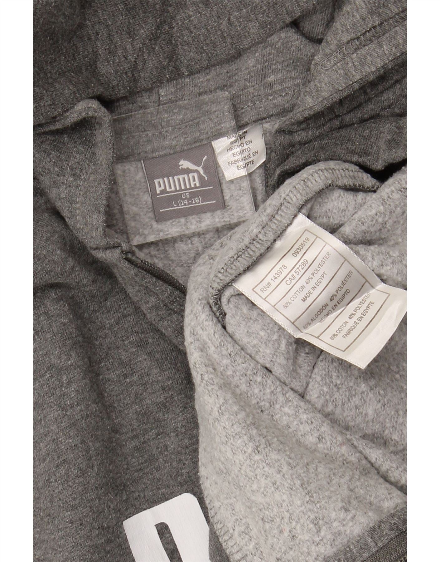 PUMA Boys Graphic Zip Hoodie Sweater 12-13 Years Large Grey Cotton