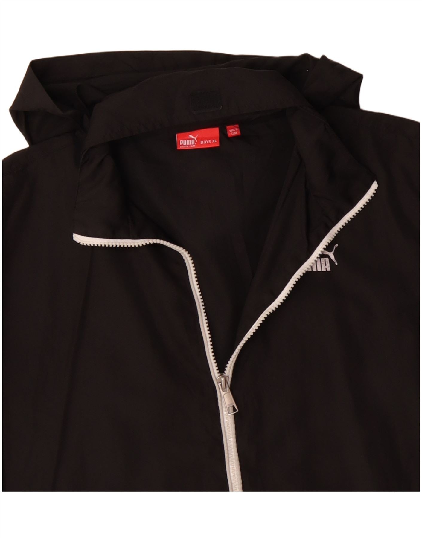 PUMA Boys Hooded Tracksuit Top Jacket 13-14 Years XL Black Polyester