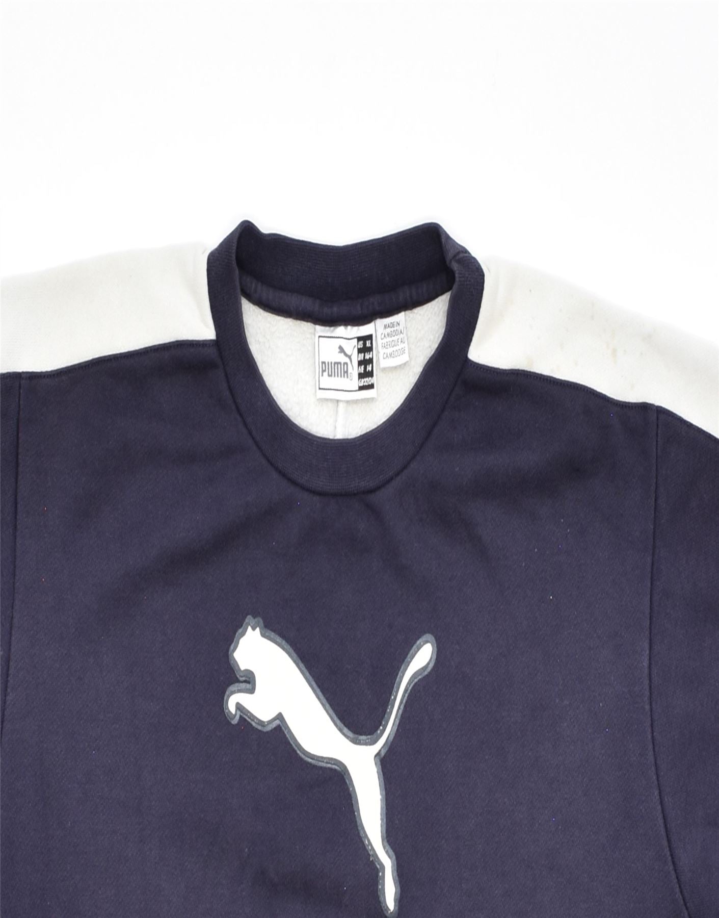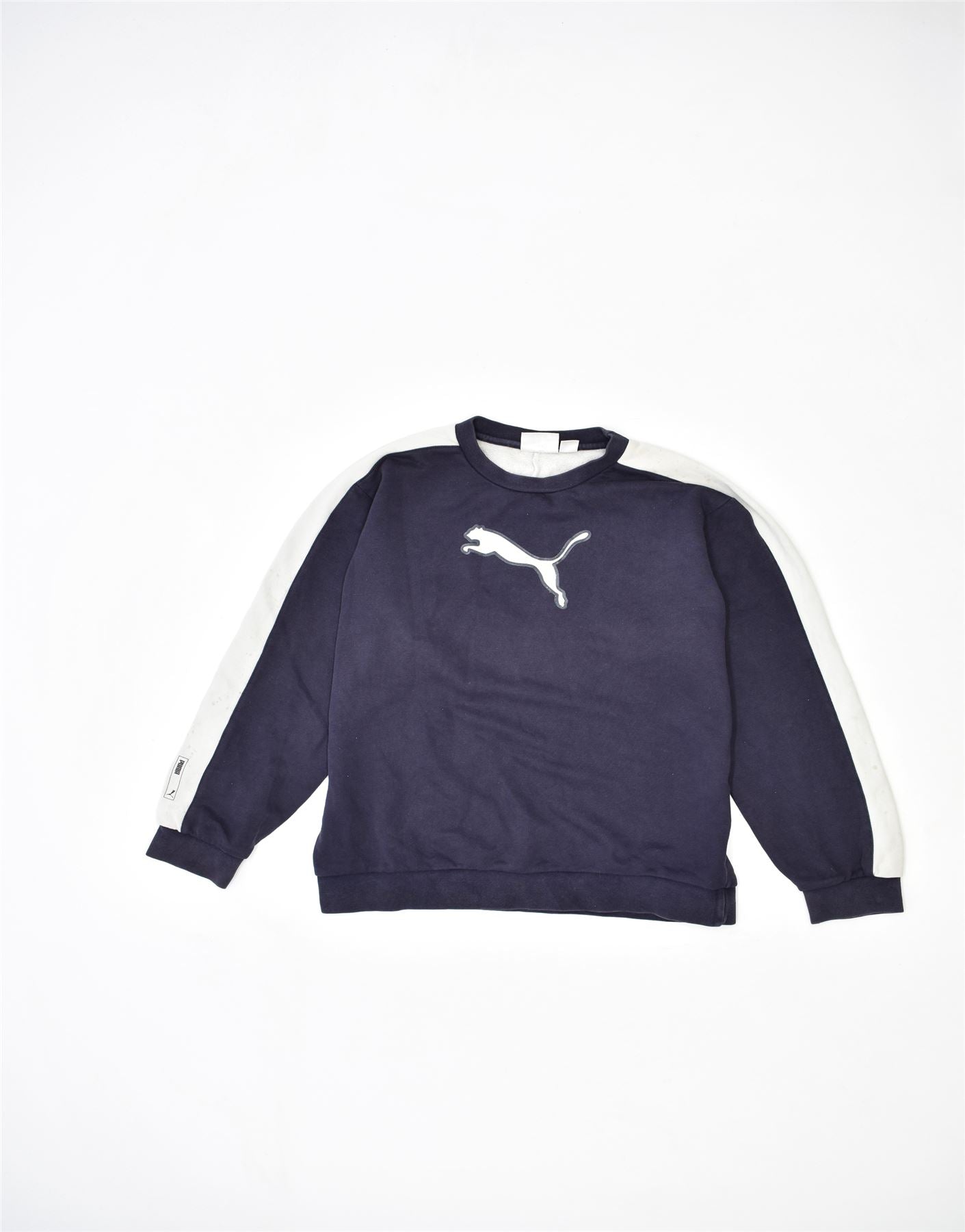 PUMA Boys Loose Fit Graphic Sweatshirt Jumper 13-14 Years Navy Blue Cotton