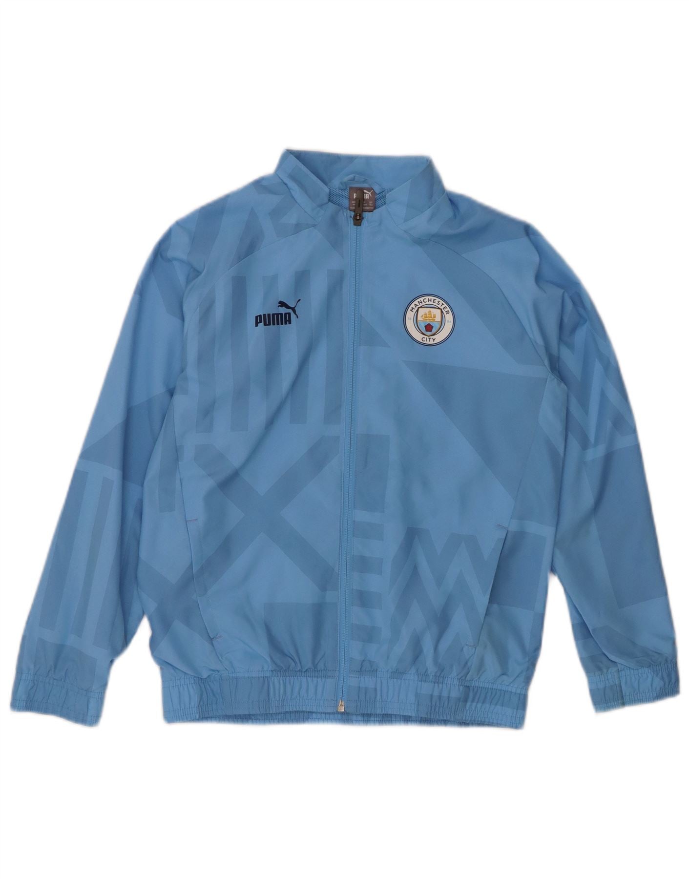 PUMA Boys Manchester City Tracksuit Top Jacket 11-12 Years Blue Geometric