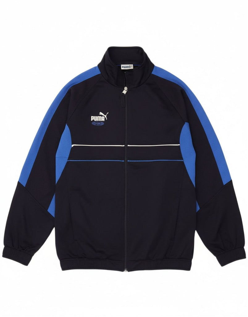 PUMA Boys Tracksuit Top Jacket 15-16 Years Navy Blue Colourblock Polyester