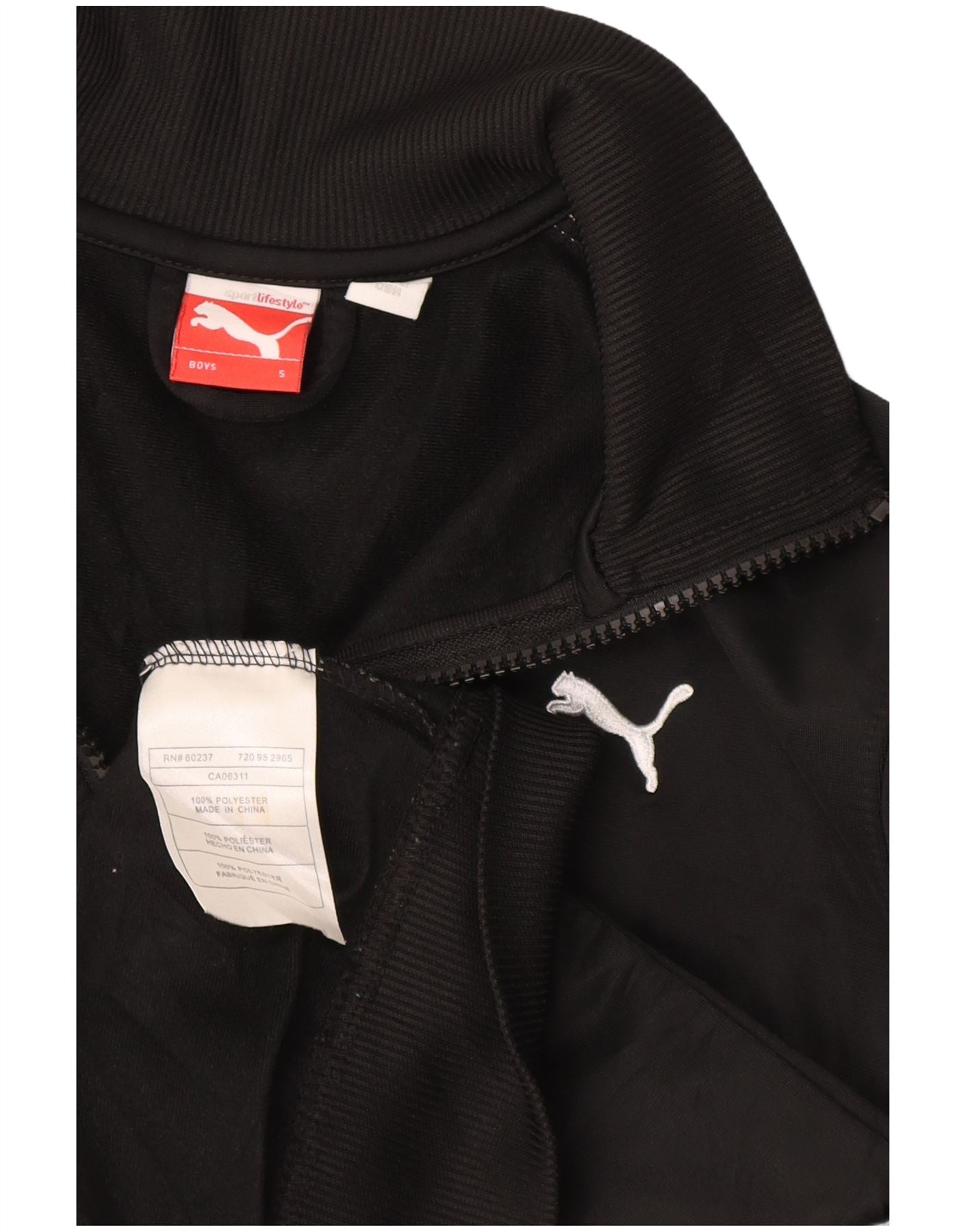 PUMA Boys Tracksuit Top Jacket 7-8 Years Small Black Colourblock Polyester