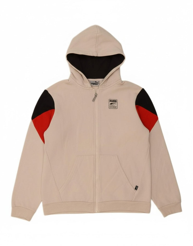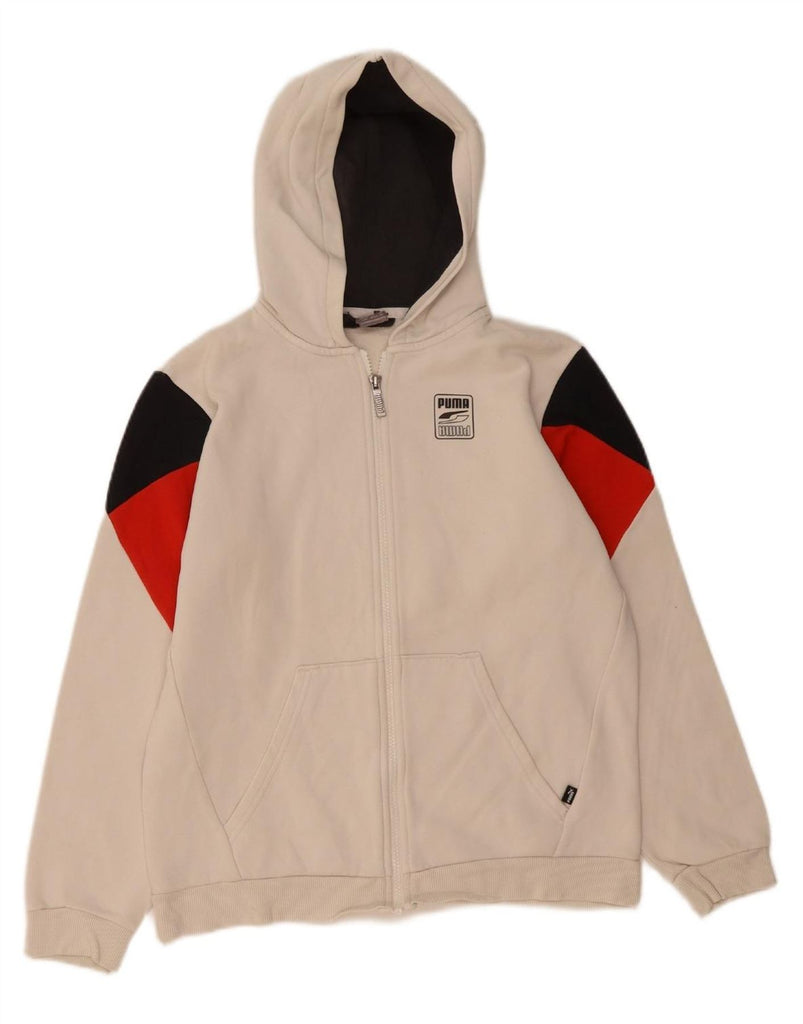 PUMA Boys Zip Hoodie Sweater 13-14 Years White Colourblock Cotton