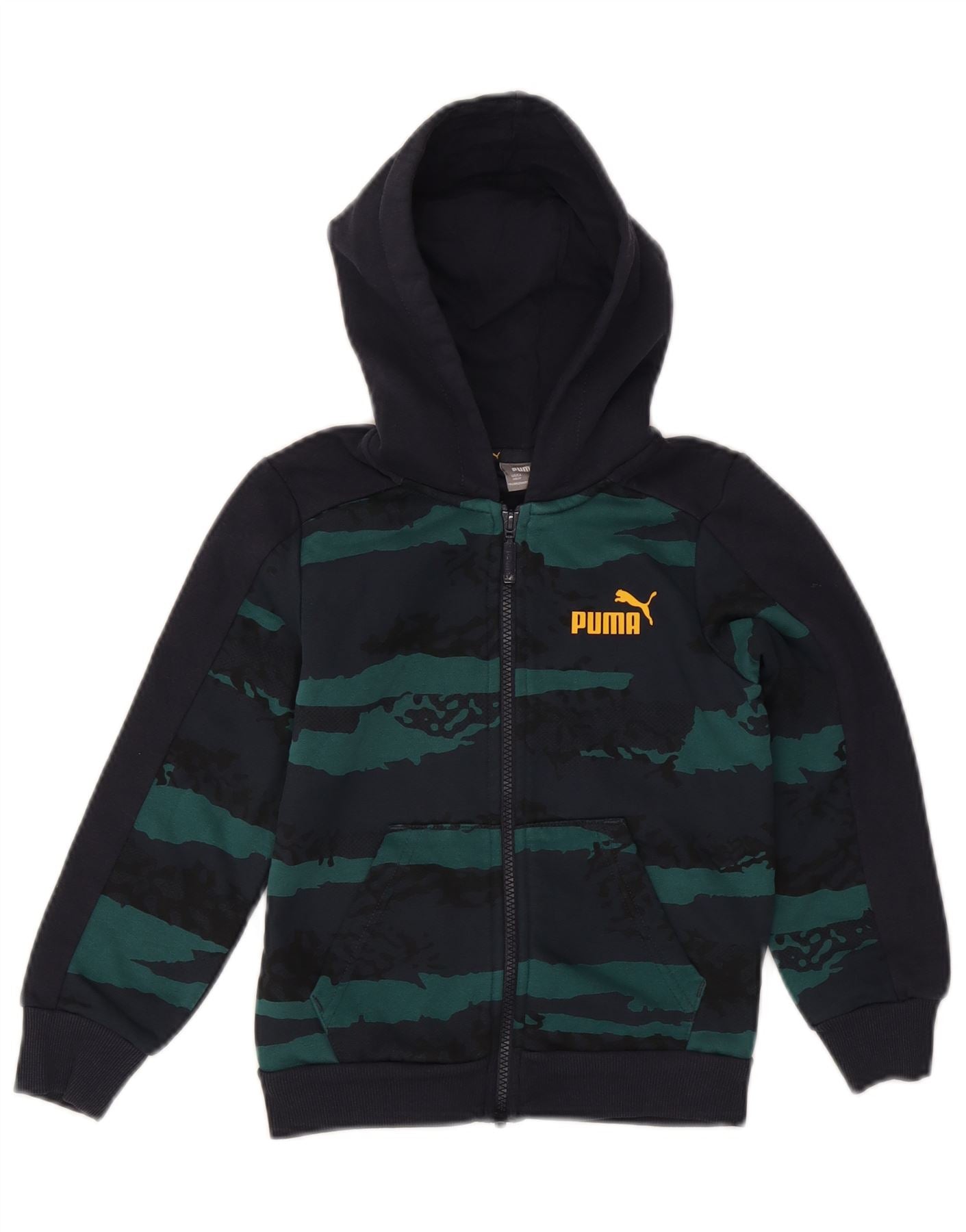 PUMA Boys Zip Hoodie Sweater 7-8 Years Navy Blue Camouflage Cotton