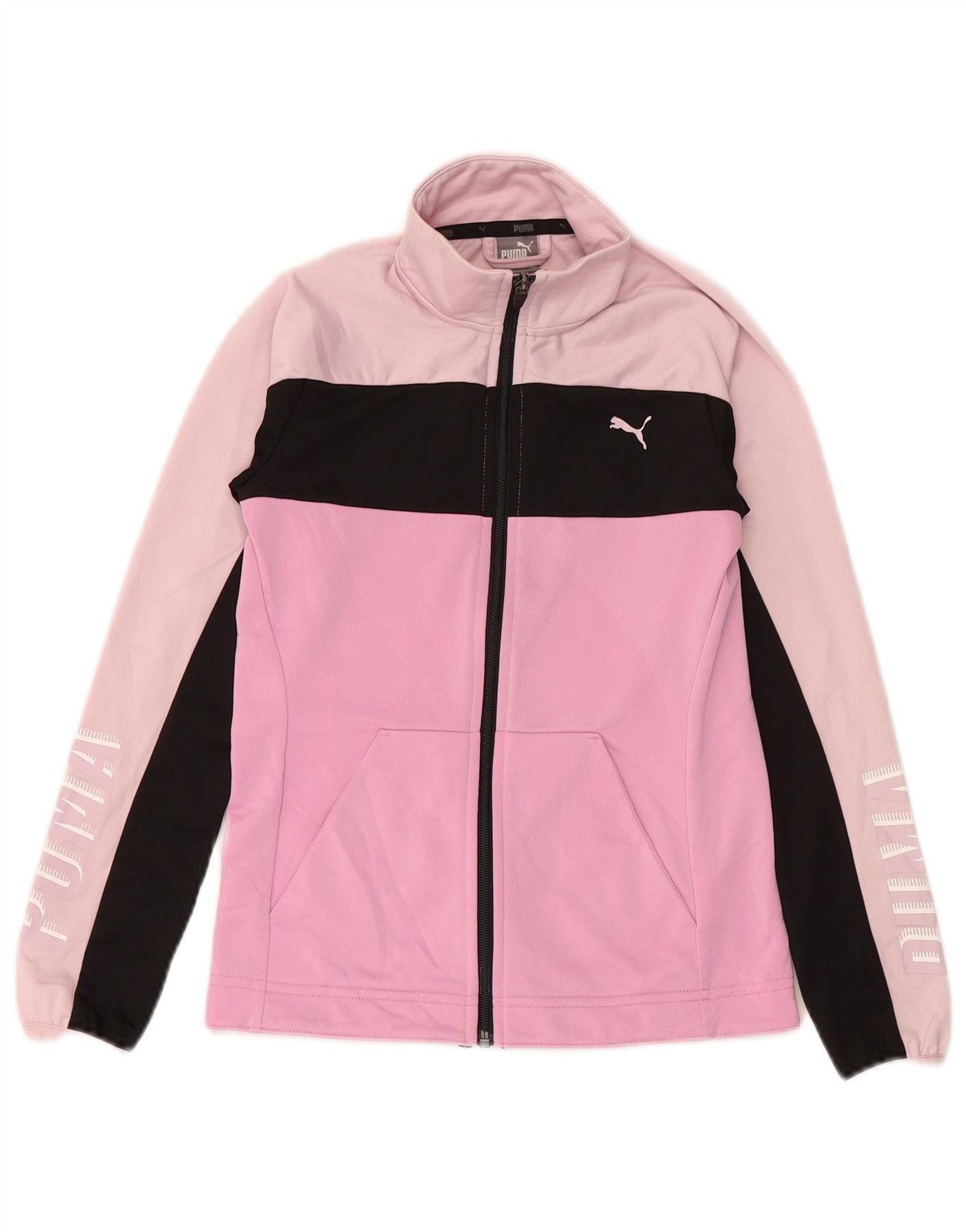 PUMA Girls Graphic Tracksuit Top Jacket 11-12 Years Pink Colourblock