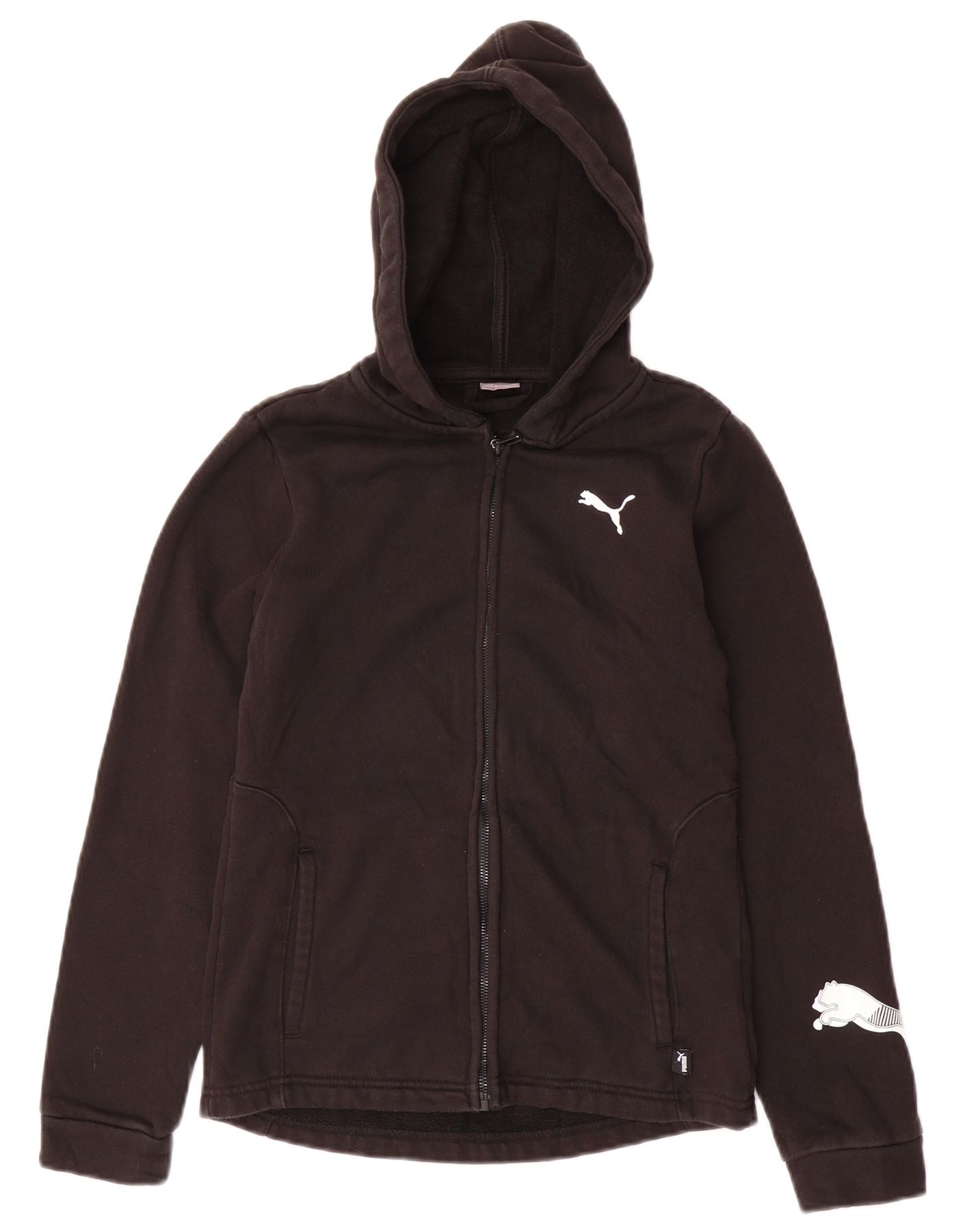 PUMA Girls Graphic Zip Hoodie Sweater 13-14 Years Black Cotton