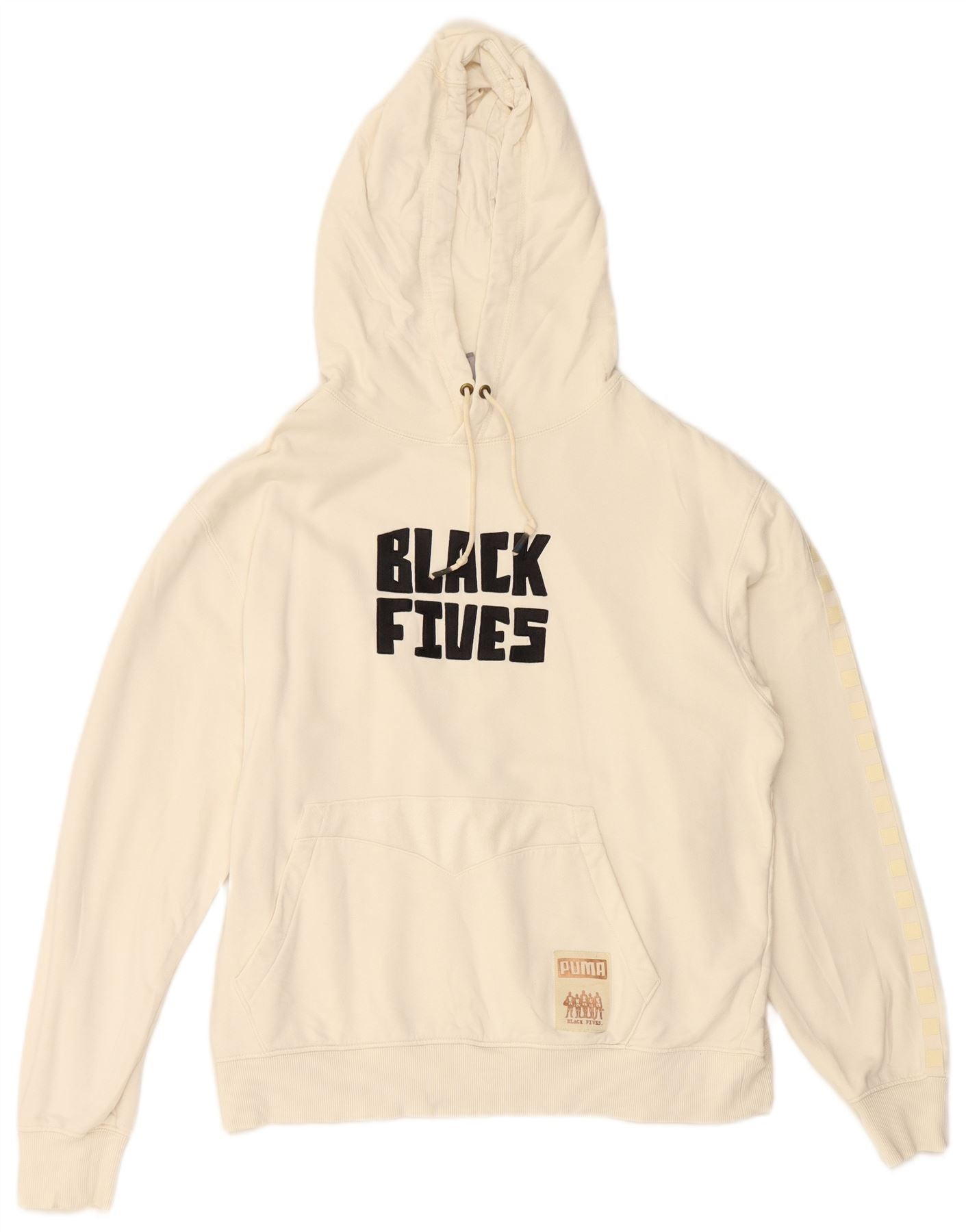 PUMA Mens Black Fives Graphic Hoodie Jumper Medium Off White Cotton