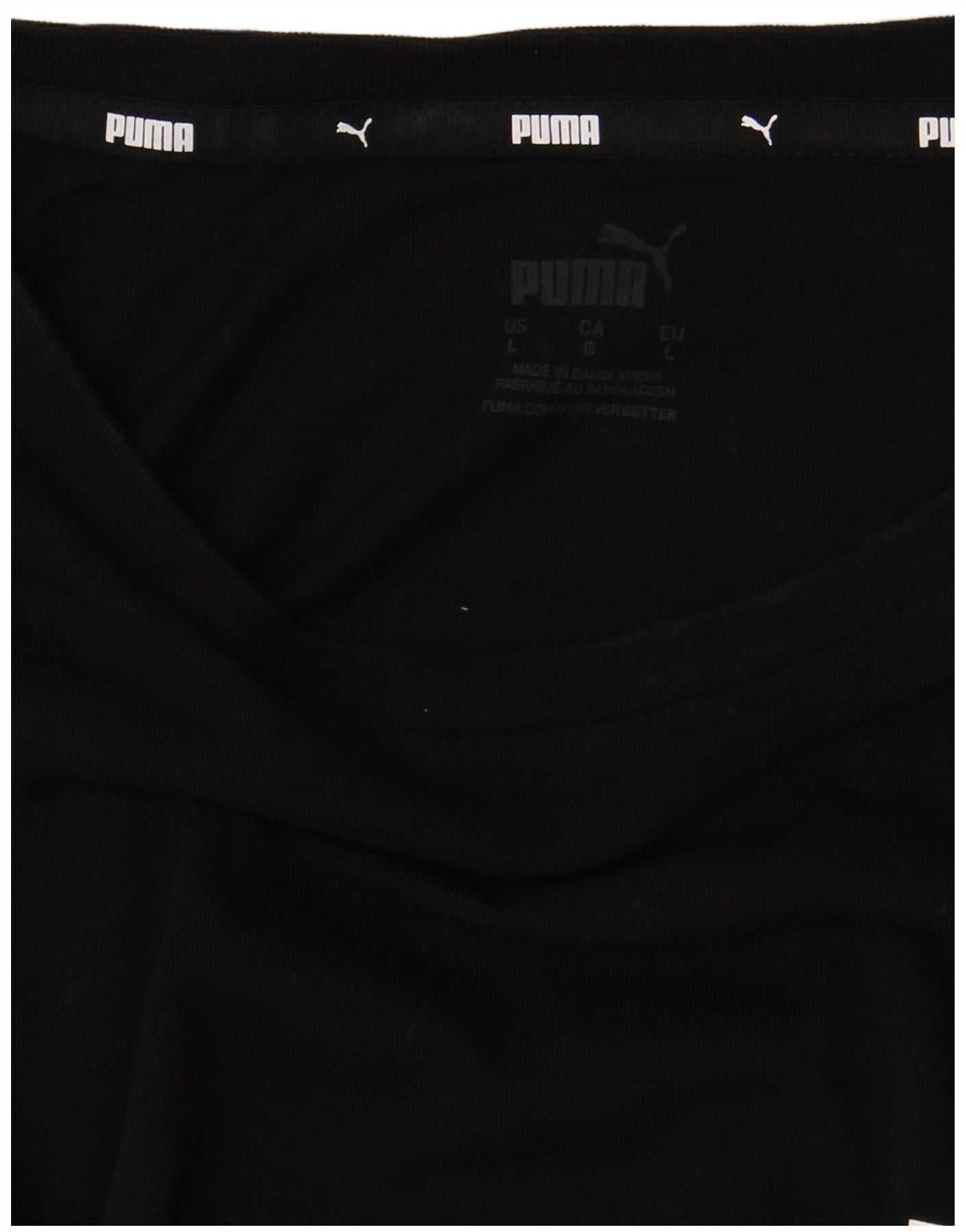 - AI Description: This Puma mens Graphic T-Shirt Top is crafted from soft black jersey fabric. It offers a comfortable, lightweight feel for everyday wear. The classic round neck and short sleeves provide a timeless silhouette. A prominent Puma logo is printed on the chest. The sleeves feature distinctive Puma branded tape, adding a stylish detail. Its regular fit ensures ease of movement and a relaxed look.