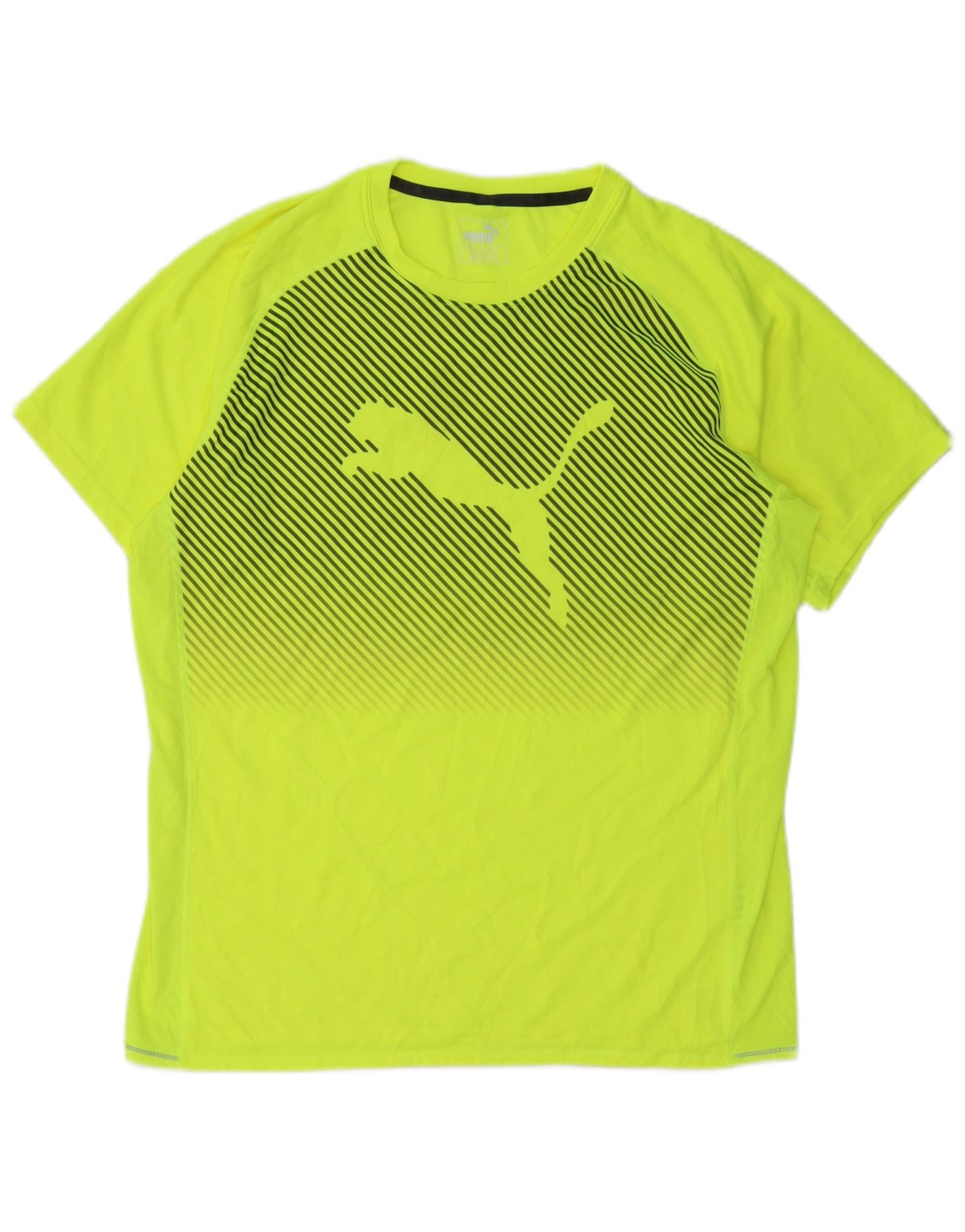 PUMA Mens Graphic T-Shirt Top Large Yellow Pinstripe Polyester