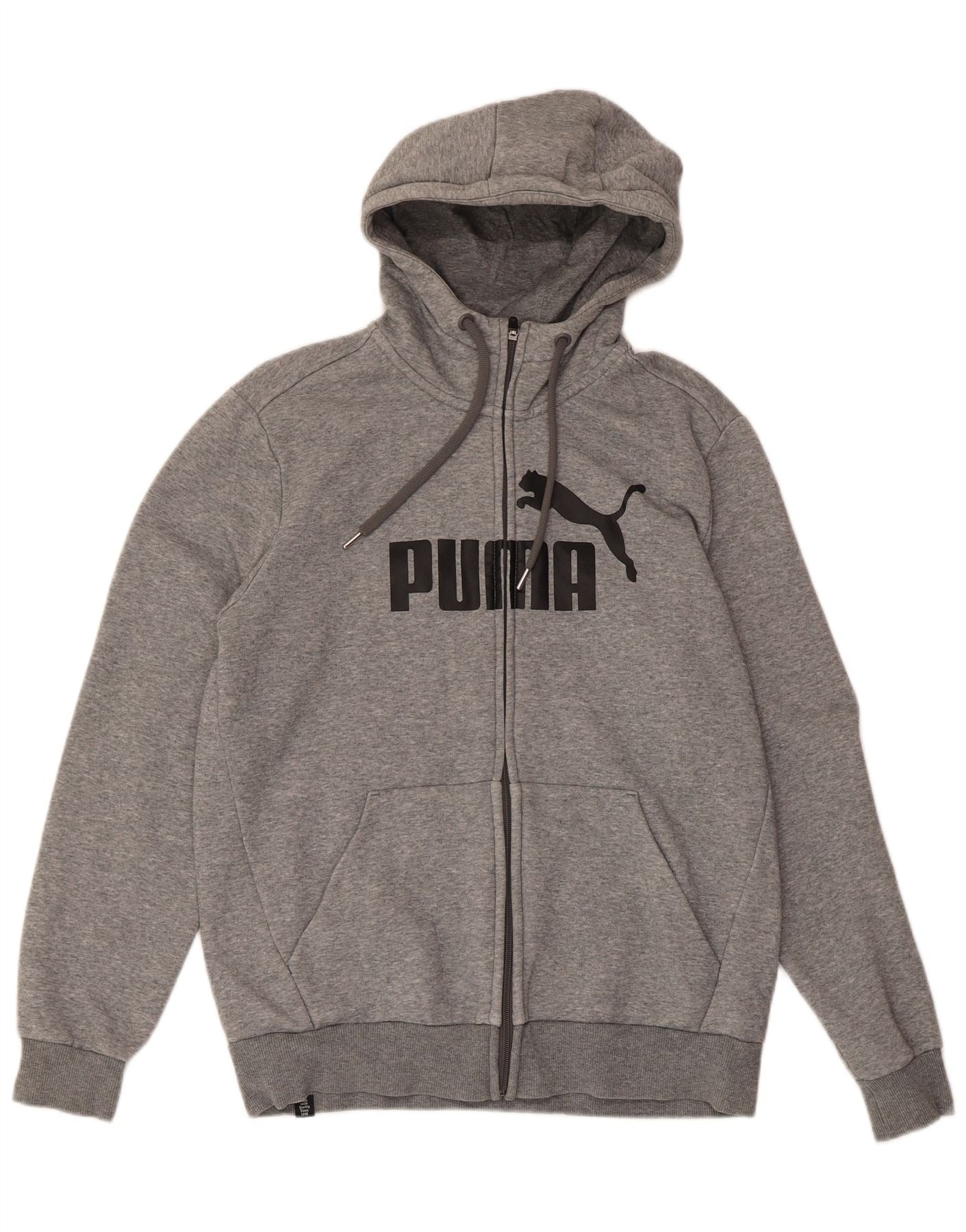 PUMA Mens Graphic Zip Hoodie Sweater Medium Grey Flecked Cotton