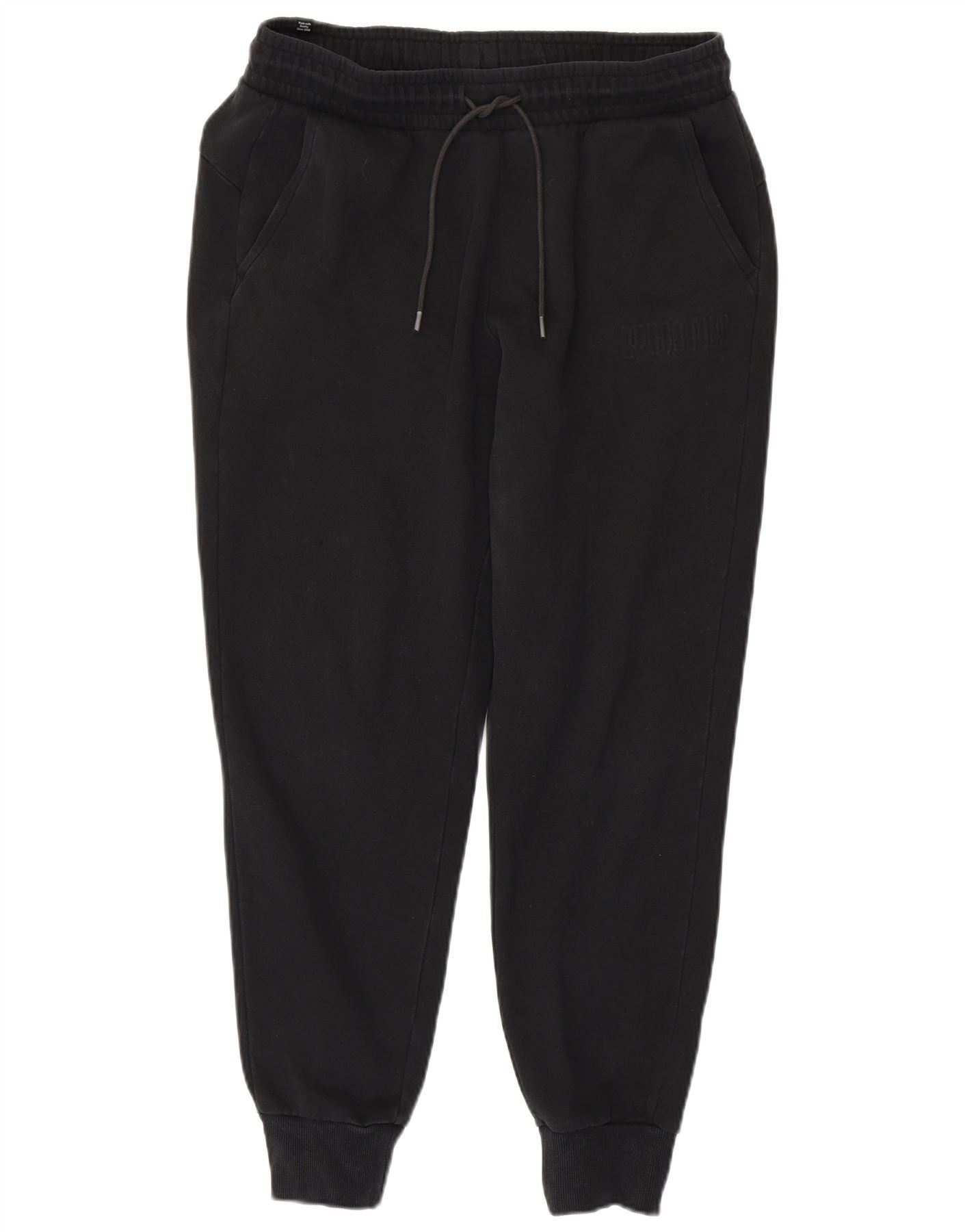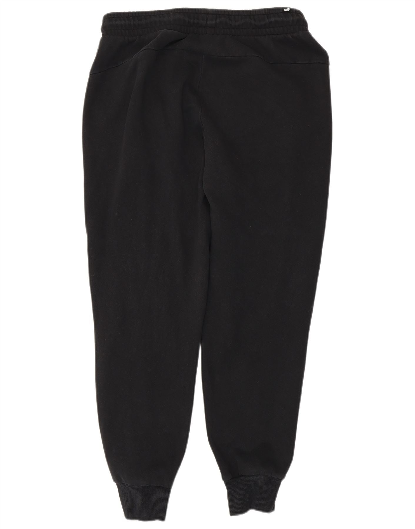 - AI Description: This Puma mens tracksuit trousers joggers are crafted from a soft black cotton blend fleece. They feature a relaxed fit with an elasticated drawstring waist for comfort. The legs taper to cuffed ankles, creating a classic jogger silhouette. Practical pockets are included. A subtle Puma logo provides branded detail. These trousers are ideal for sports or casual wear.